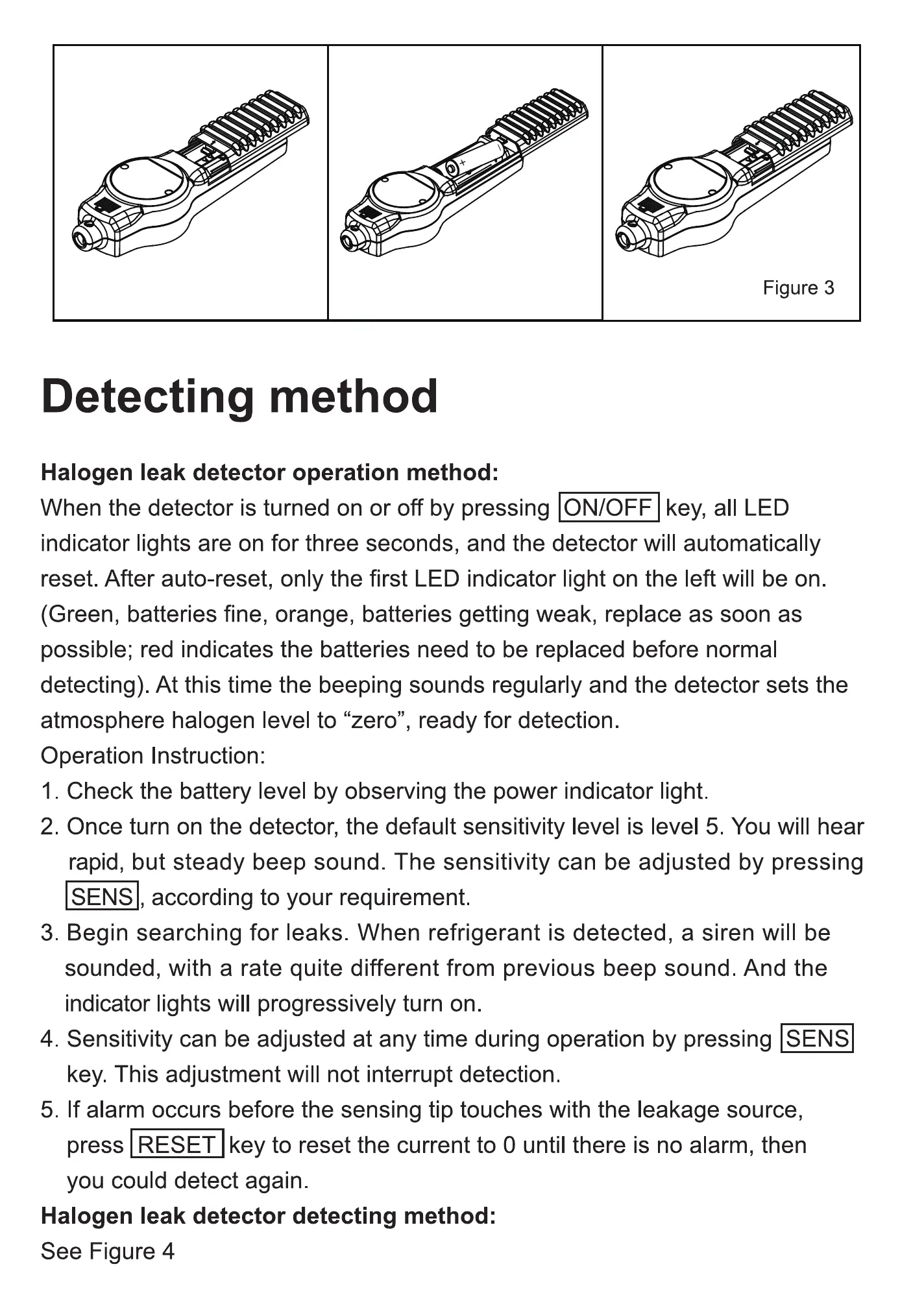 2 Once tum on the detector, the default sensitivity level is level 5 You wil hear