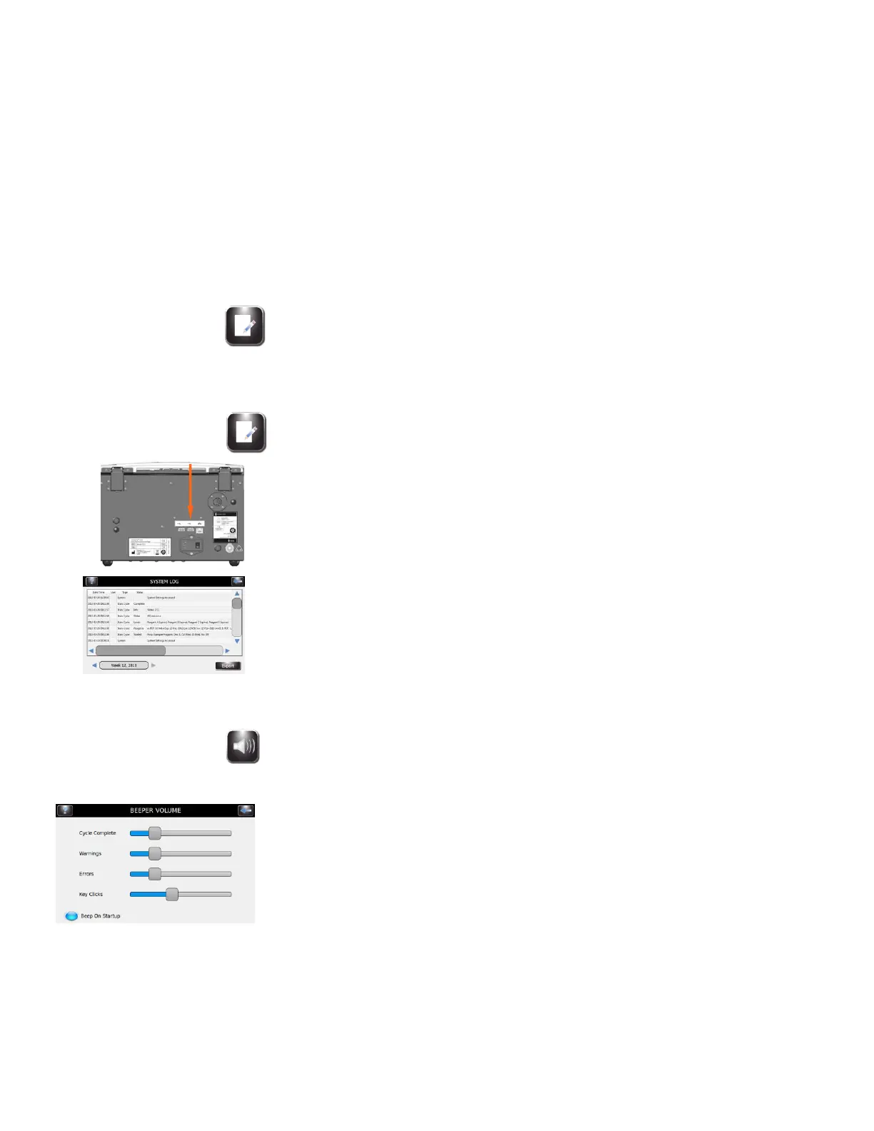 2 Use the sliders to modify the beeper volume for Cycle Complete, Warnings,