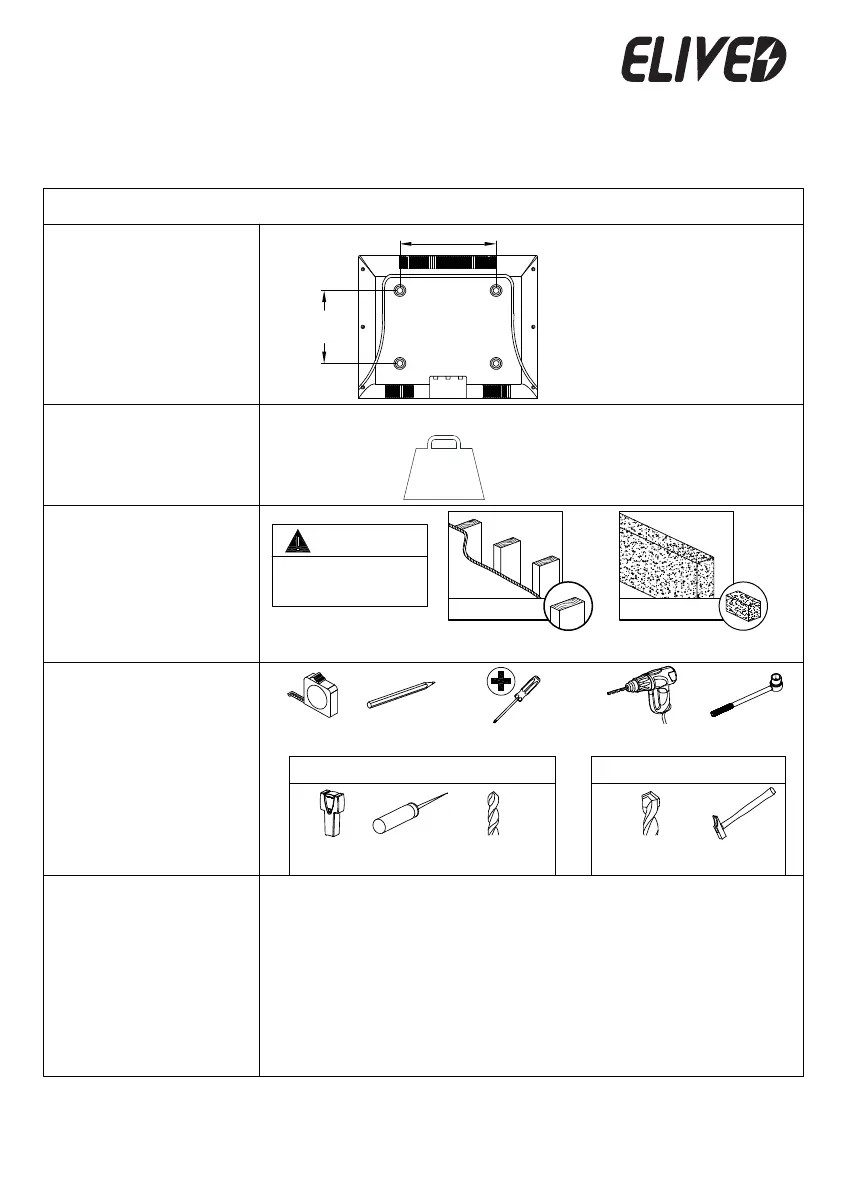 ● Questo prodotto è progettato per pilastri in legno e muri in calcestruzzo solido - NON