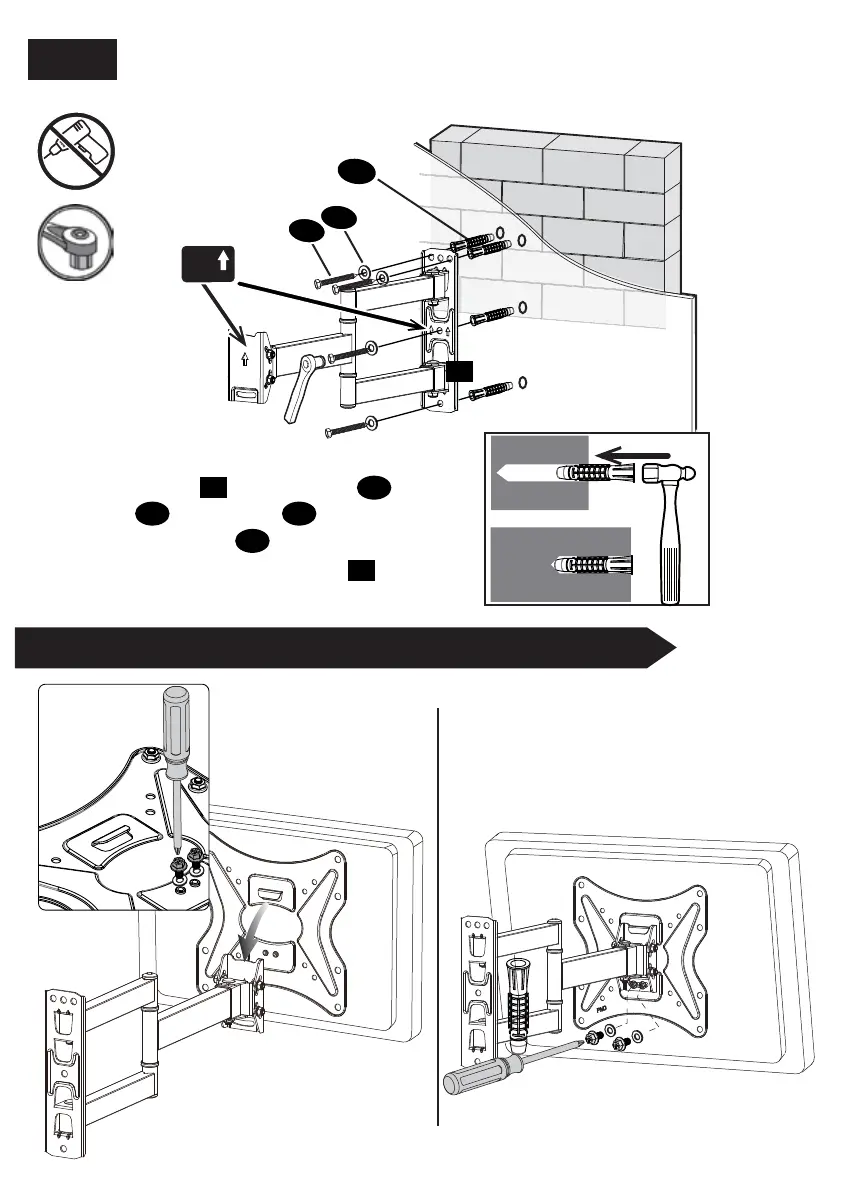STEP 5 Lift and hang TV with brackets onto wall bracket.