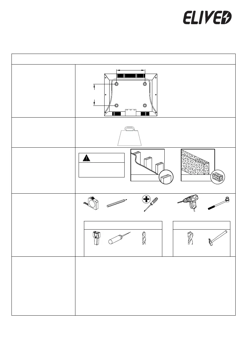 ● Il muro deve essere capace di portare almeno cinque volte il peso totale del televisore e del