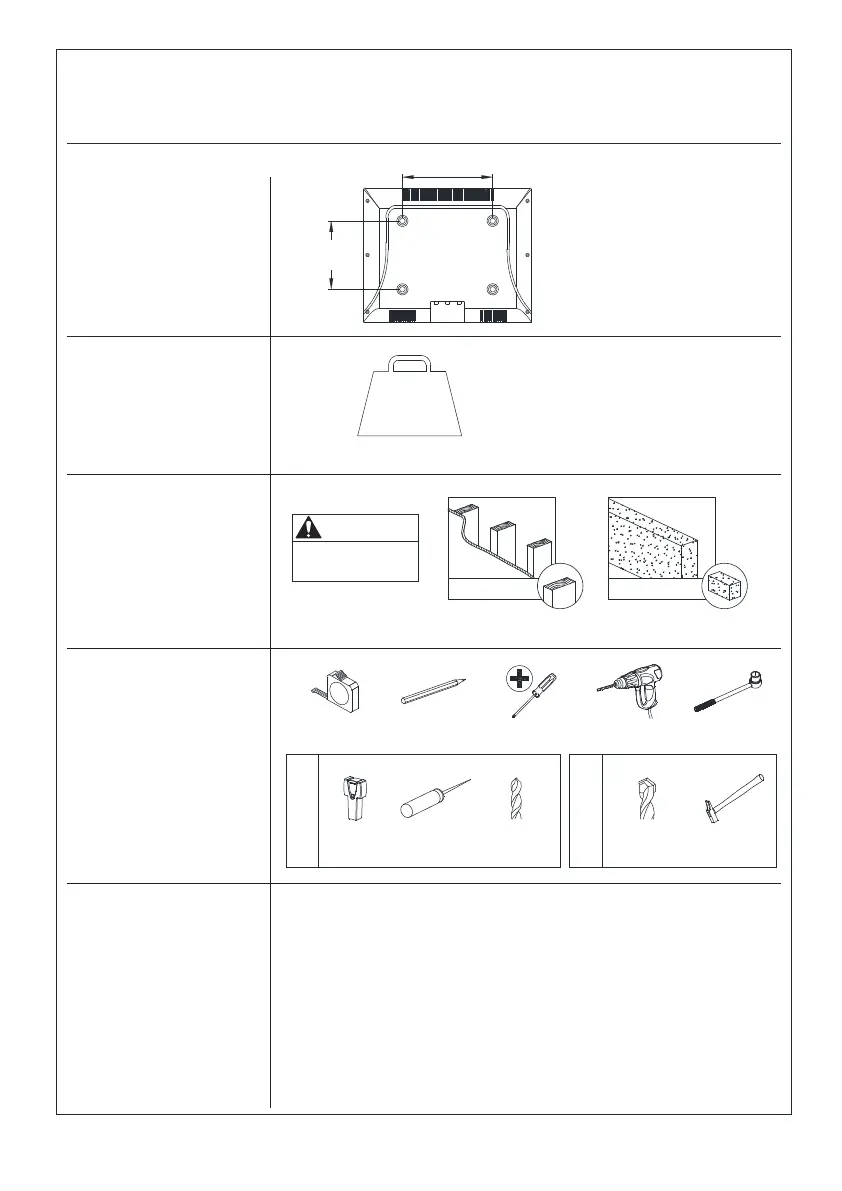 ● The wall must be capable of supporting five times the weight of the TV and mount