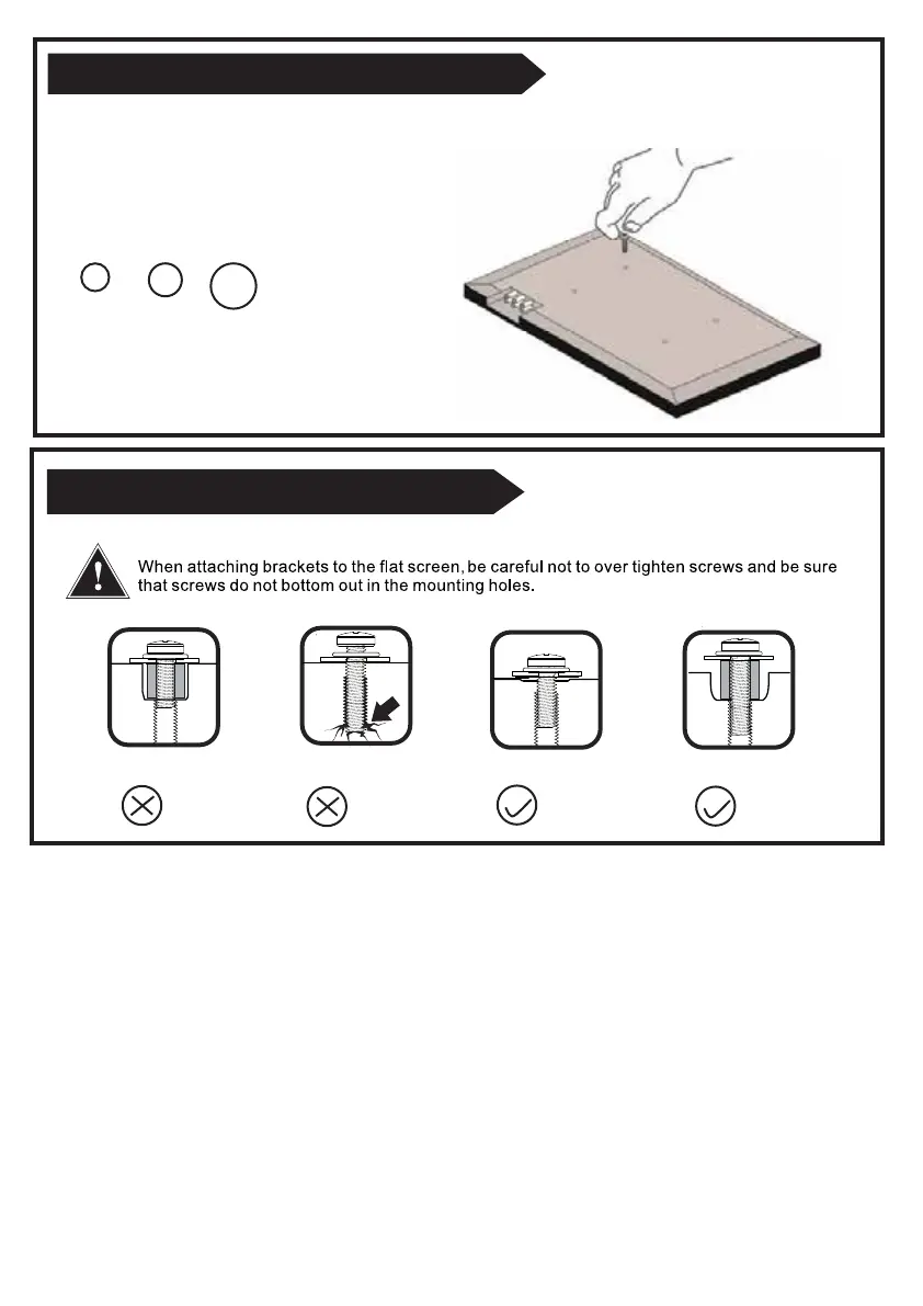 Thread screws by hand into the threaded holes on the back of your TV to select which screw