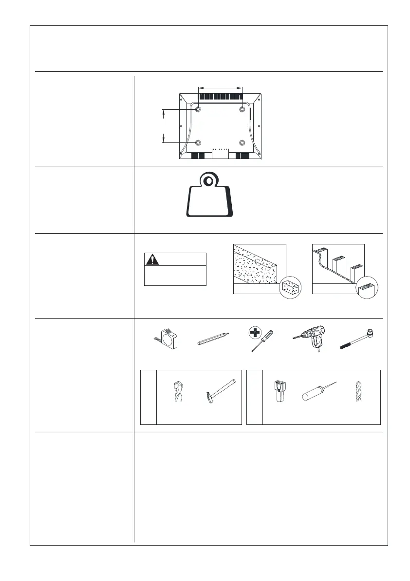 ● The wall must be capable of supporting five times the weight of the TV and mount