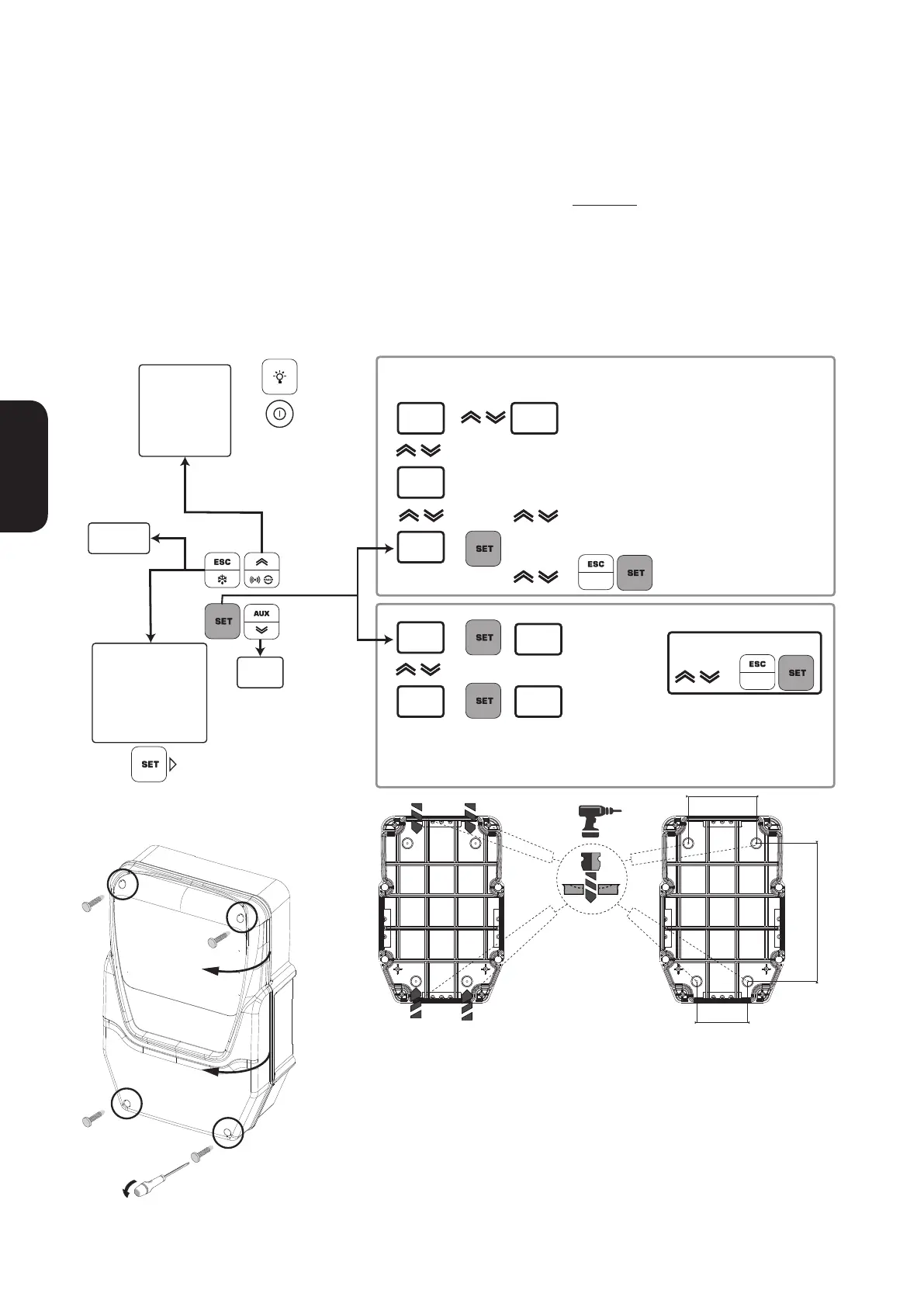 • Drill 4 holes (see A...D) in the wall and