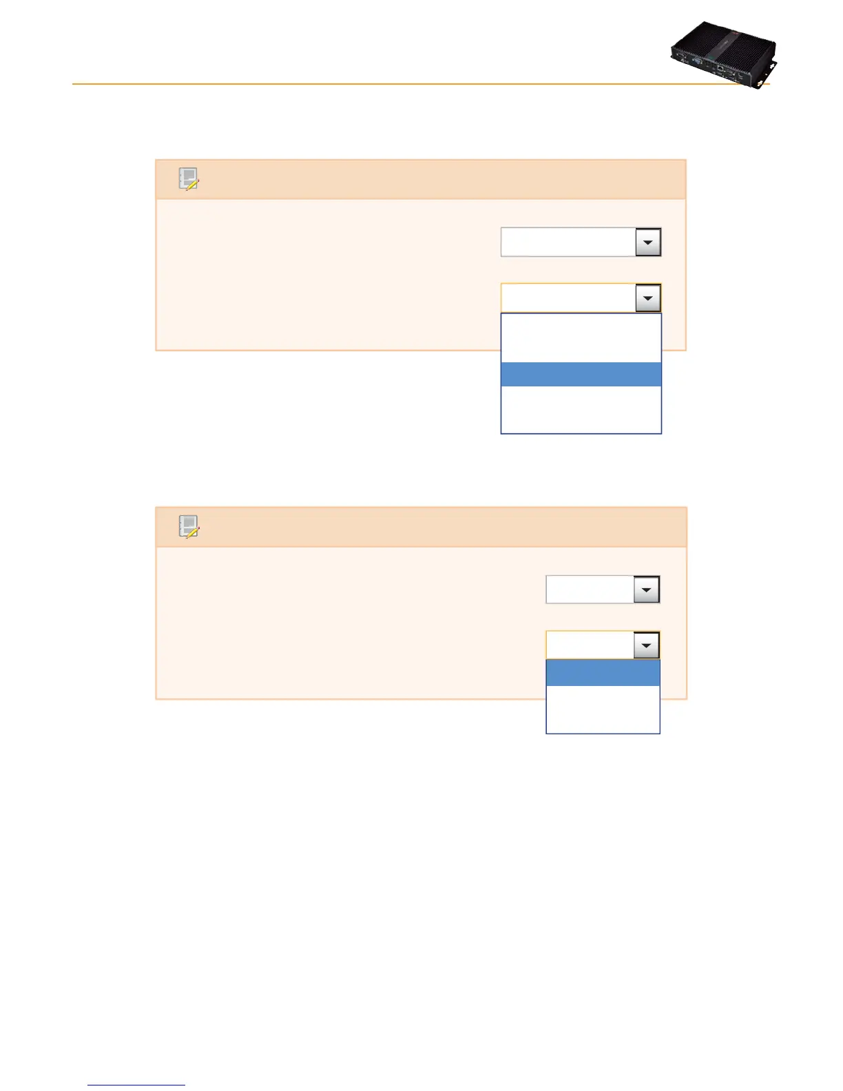 In both cases, the drop-down menus list all media found for the type of message, even if the specific one is not currently enabled.
