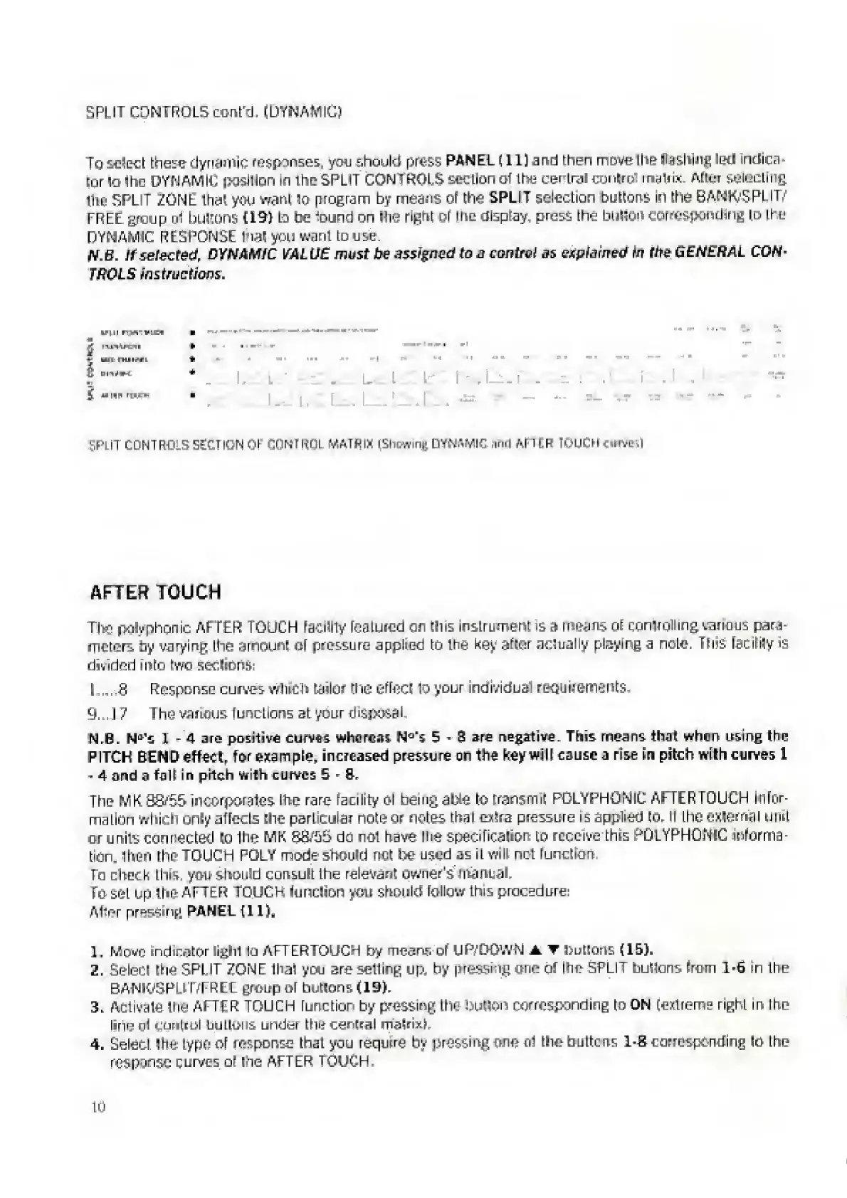 Elka MK55 - After Touch; Split Control Section of Control Matrix