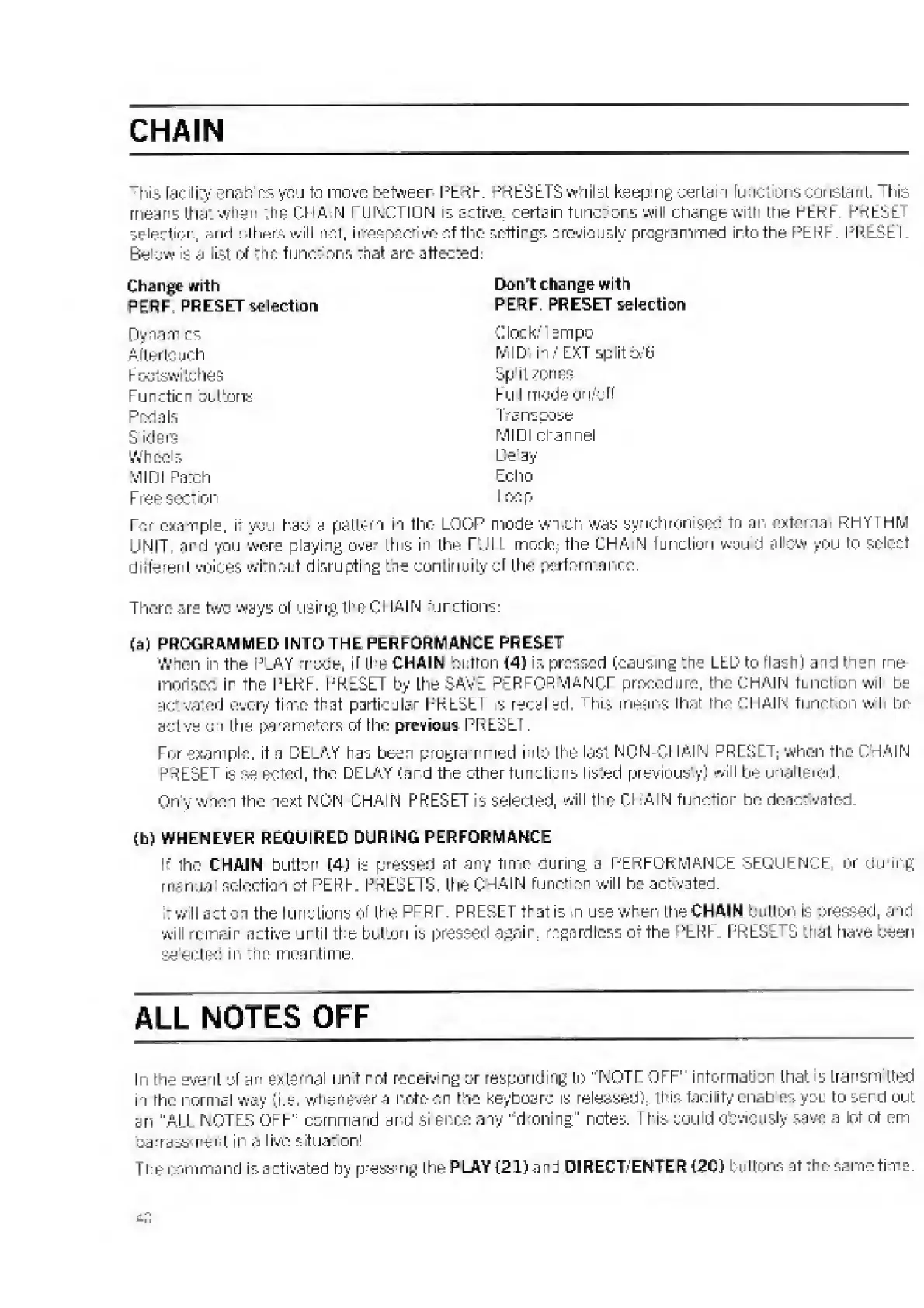 Elka MK55 - Chain; All Notes off; Programmed into the Performance Preset; Whenever Required During Performance