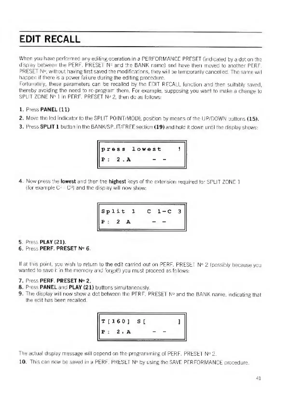 Elka MK88 - EDIT RECALL; Recalling and Comparing Edits