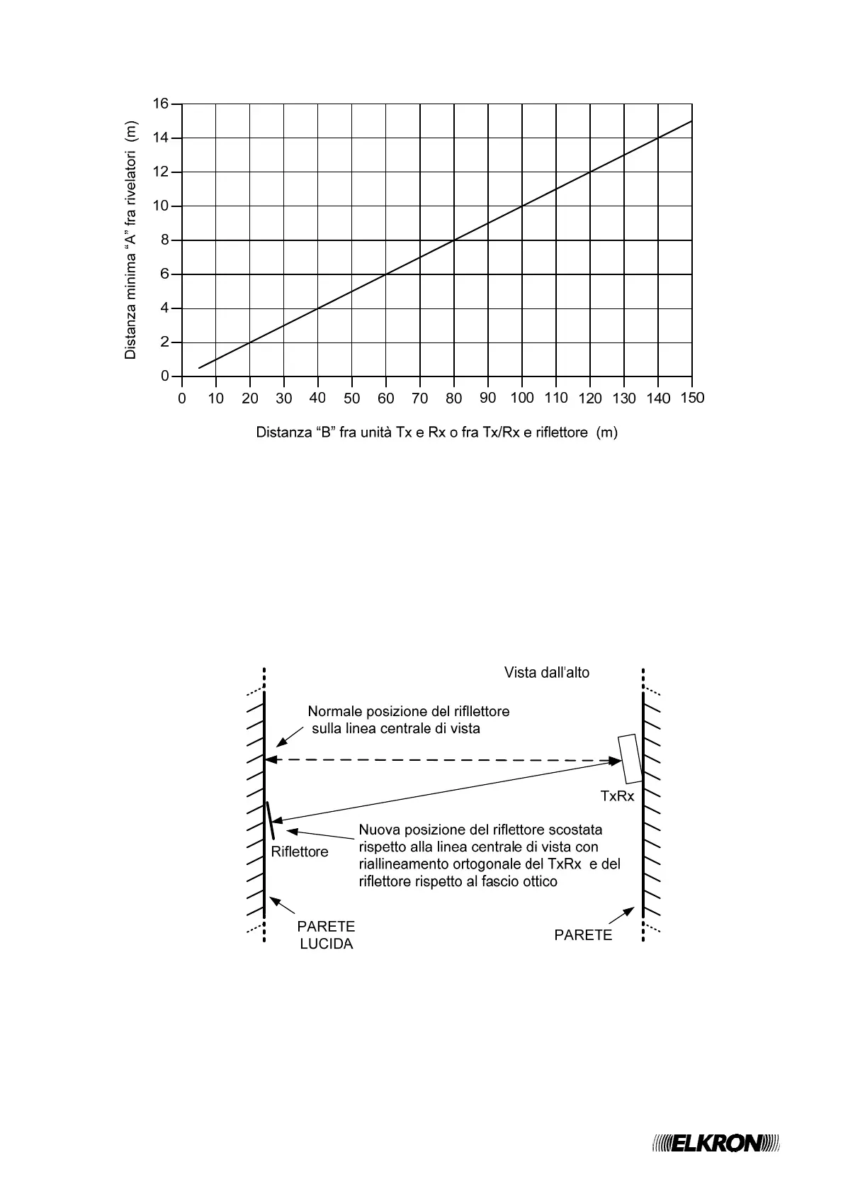 Figura 4 - Installazione rivelatore Tx/Rx e relativo riflettore su parete lucida
