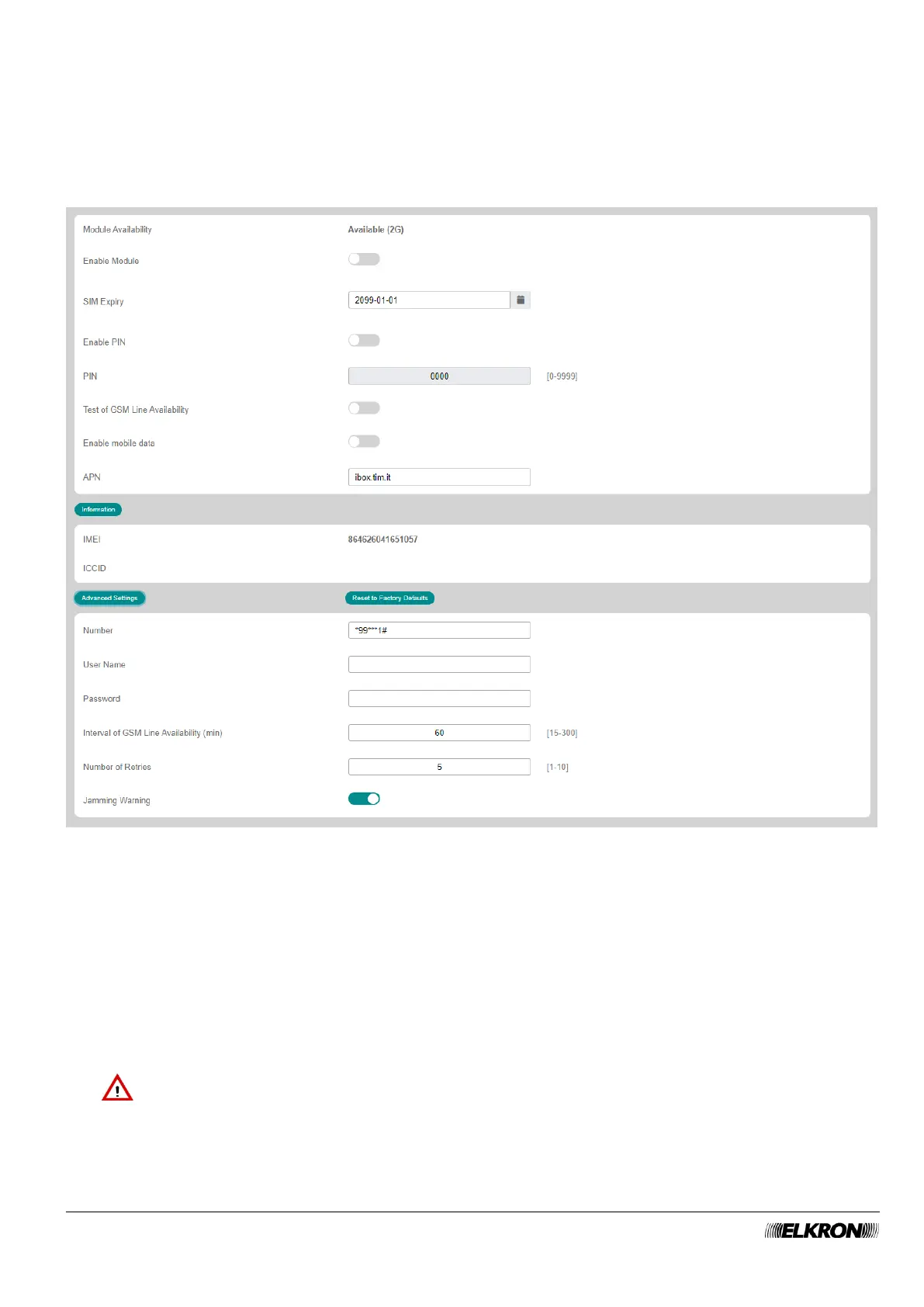 • Enable Module: this can be used to enable and disable the GSM module.