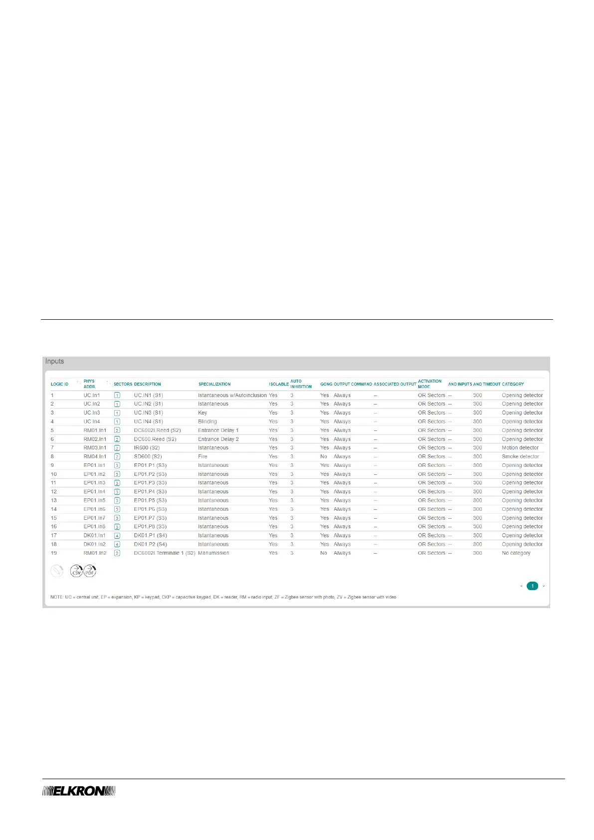 • PDF: This can be used to export the sectors table to a PDF file.