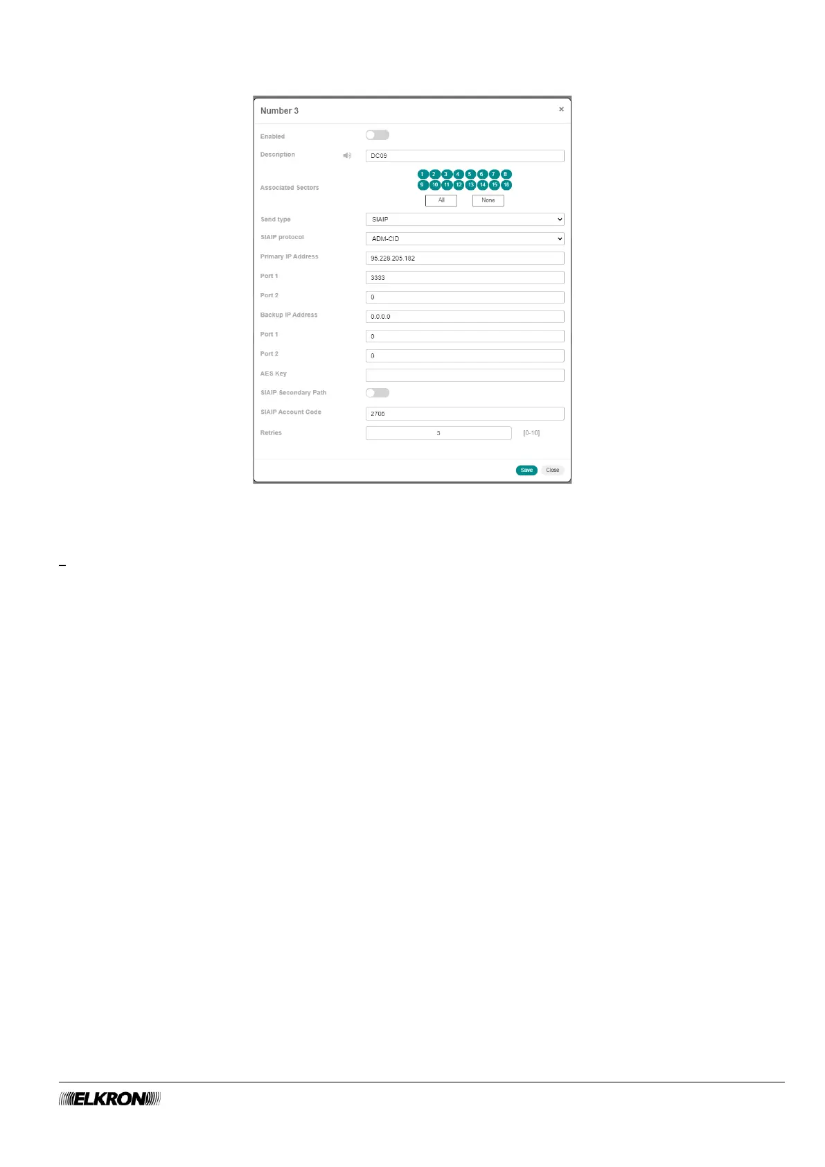 Click on the Save button to save the changes, the Close button to close the window and not save the