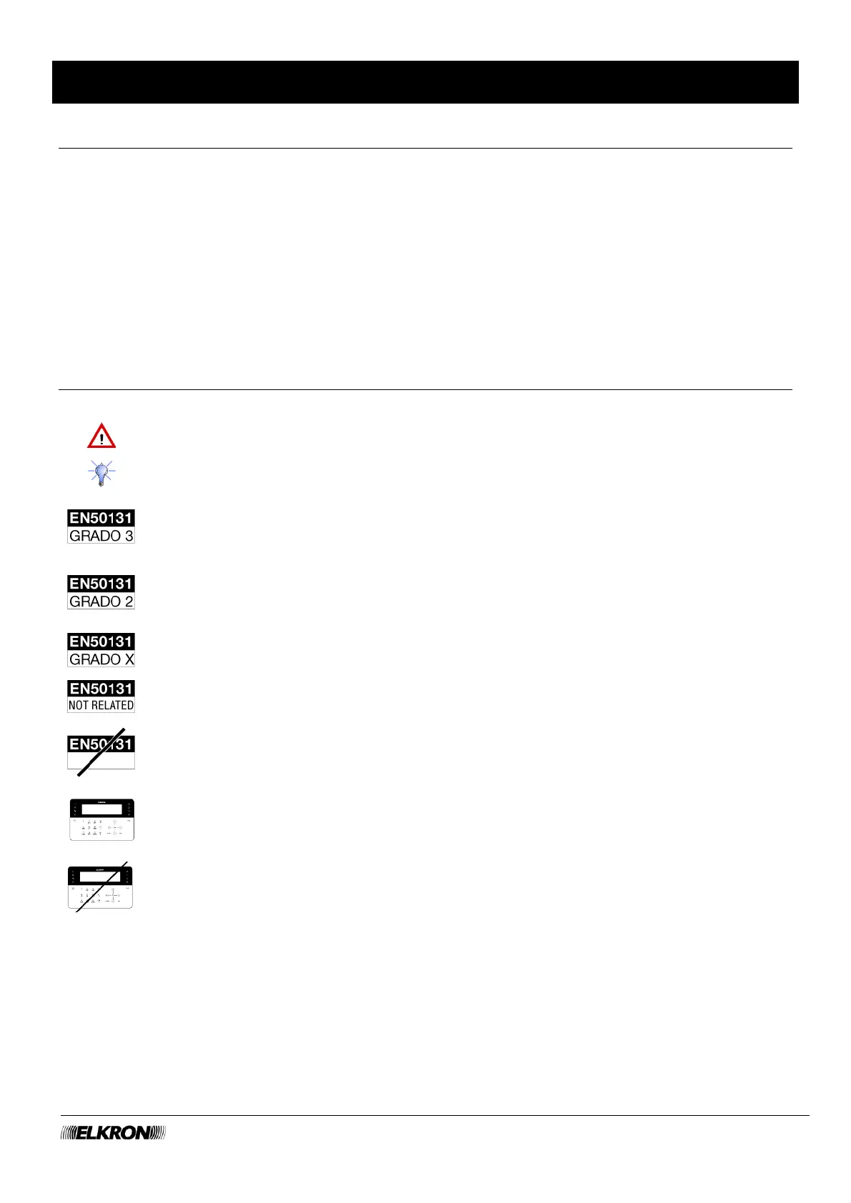 The symbol means that the function or device is not EN 50131 certified.