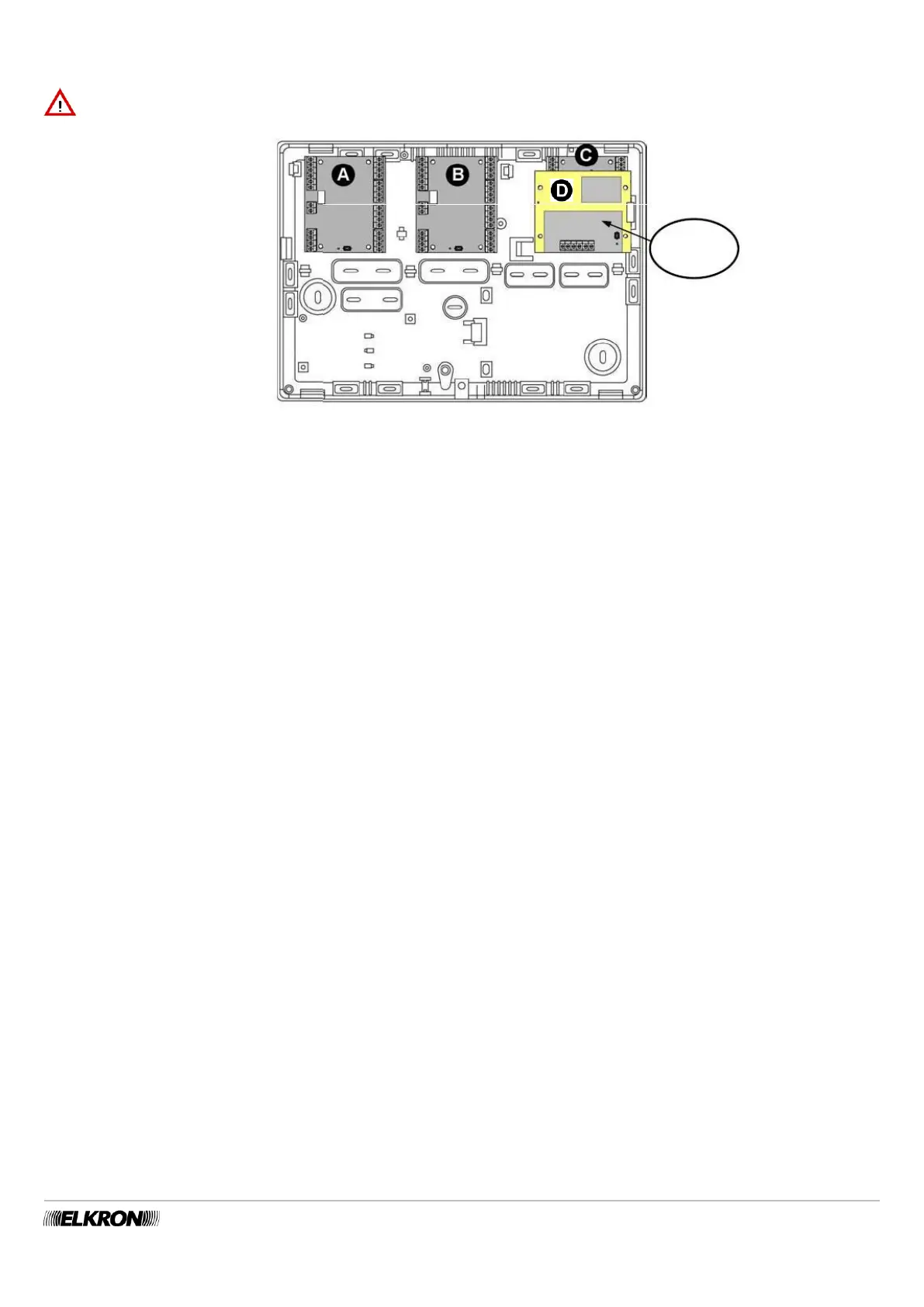 Inside the MP500/8 control panel, 4 EP508 expansions (positions A, B, C and D) or 3 EP508 expansions and 1 radio expansion can be
