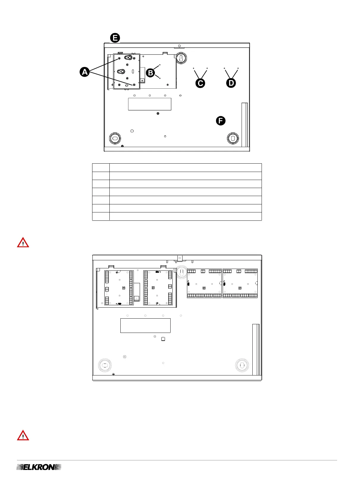 Inside the MP500/16 control panel, 4 EP508 expansions (positions A, B, C, and D) can be assembled. The expansions must be