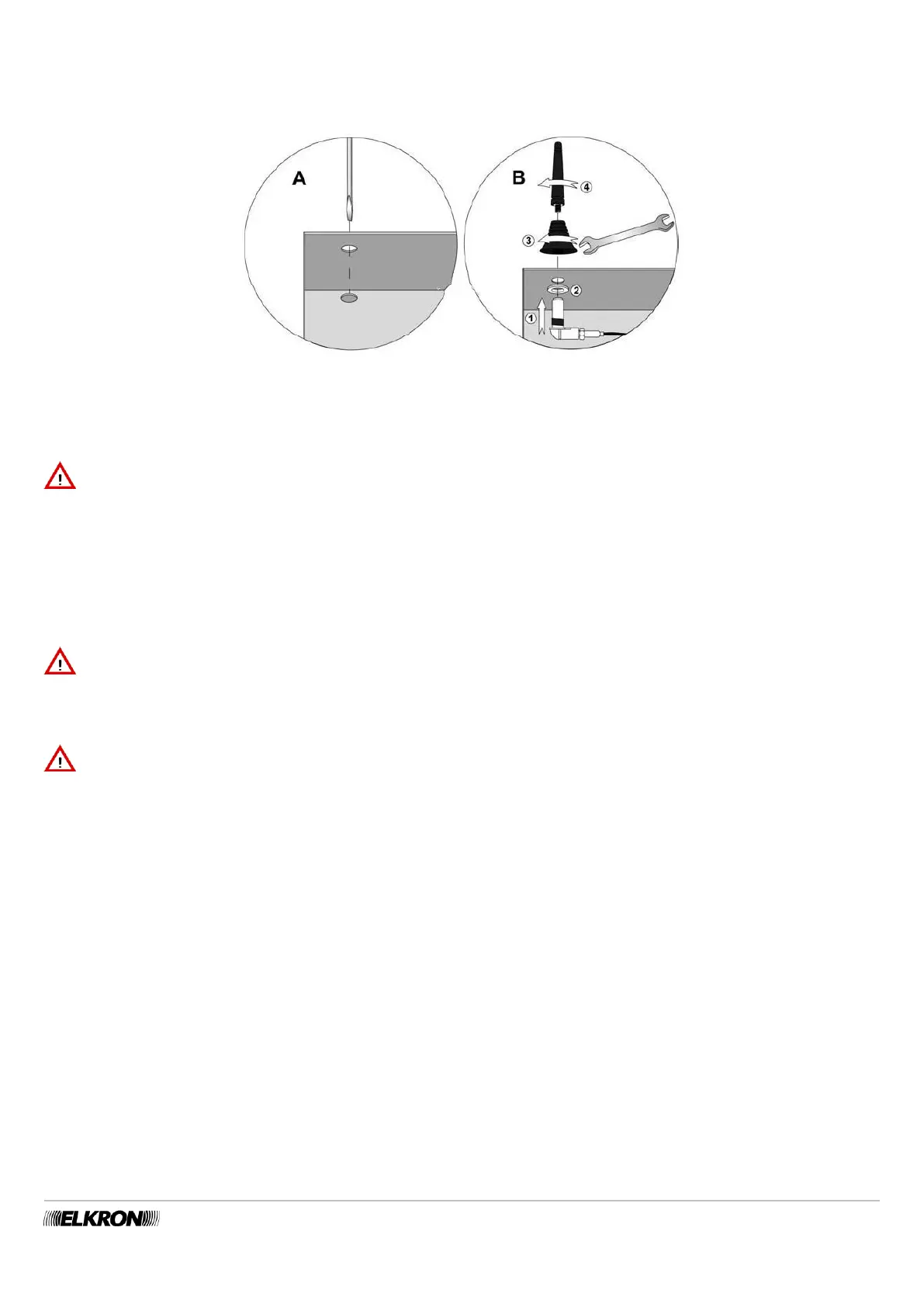 antenna for the metallic box (Figure 29, E - Fastening point options in the MP500/16 control panel).