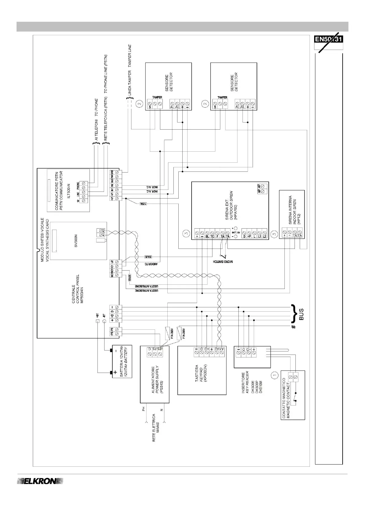 Elkron MP500/8 - Example of Diagram with N.C. Inputs MP500;4 N CONTROL PANEL