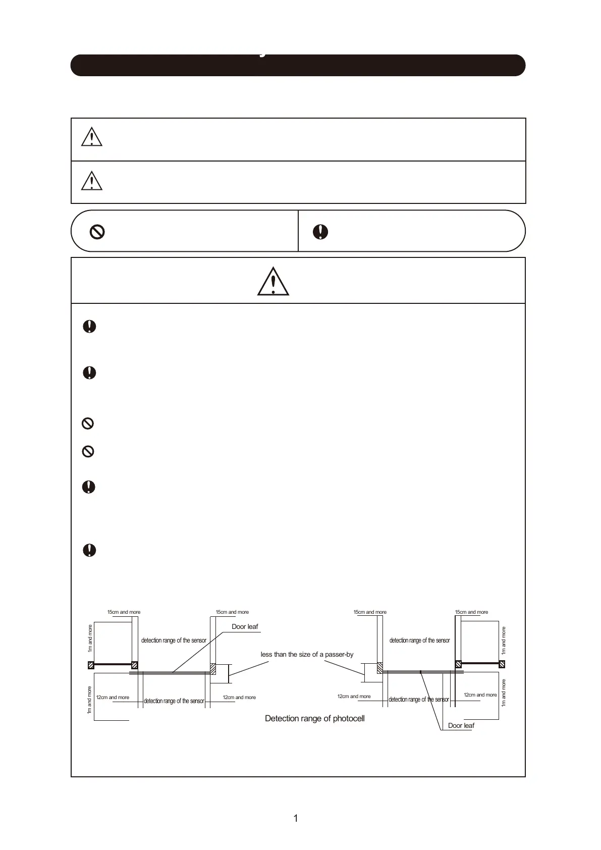 Installation and adjustment must be carried out according to the Installation Manual.