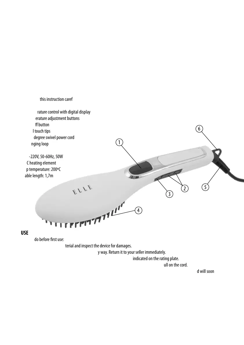 • Preparing the hair: Wash your hair and dry it well. Comb your hair thoroughly. Do not use hairspray or other flammable