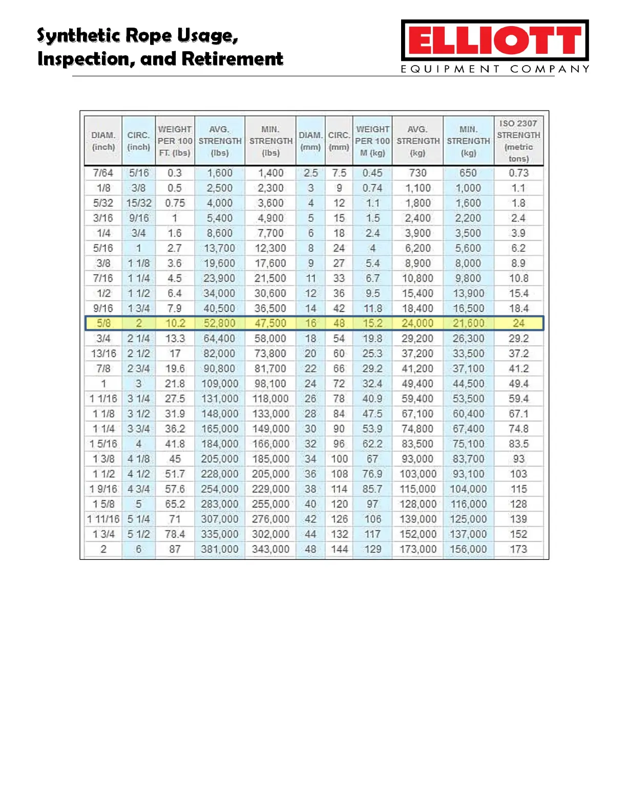 Elliott Digger Derrick - Samson Amsteel Specifications Chart