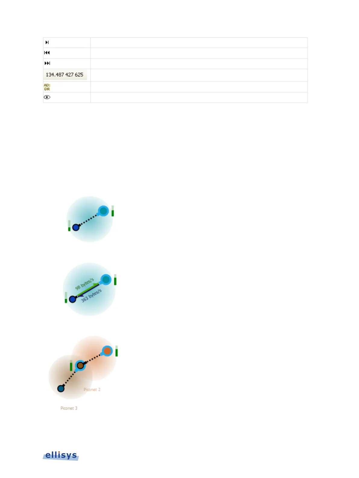 which devices are the master (always blue-bordered) or a slave, RSSI indications (green