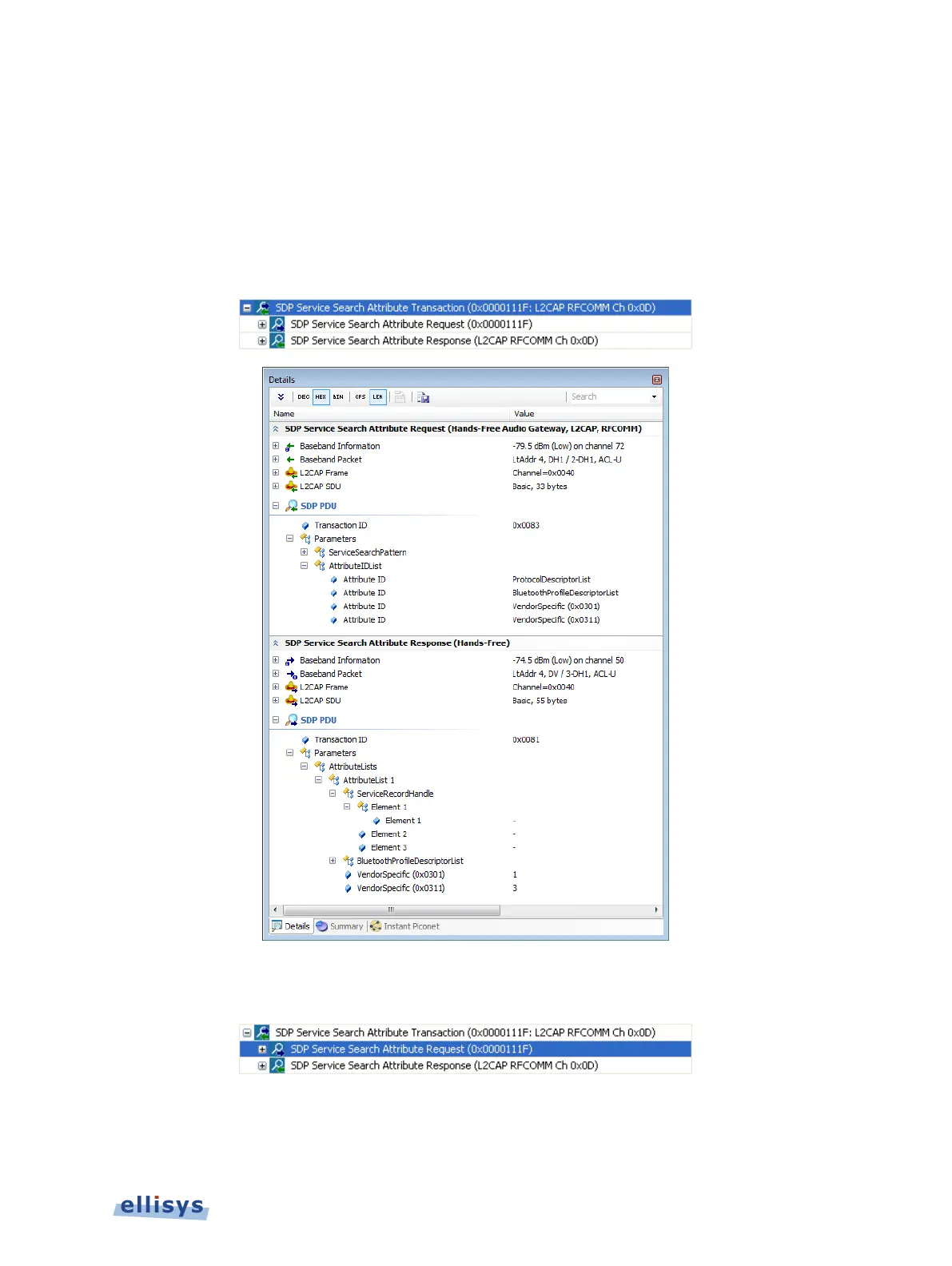 etc.). For example, when selecting the SDP Service Search Attribute Transaction (below),