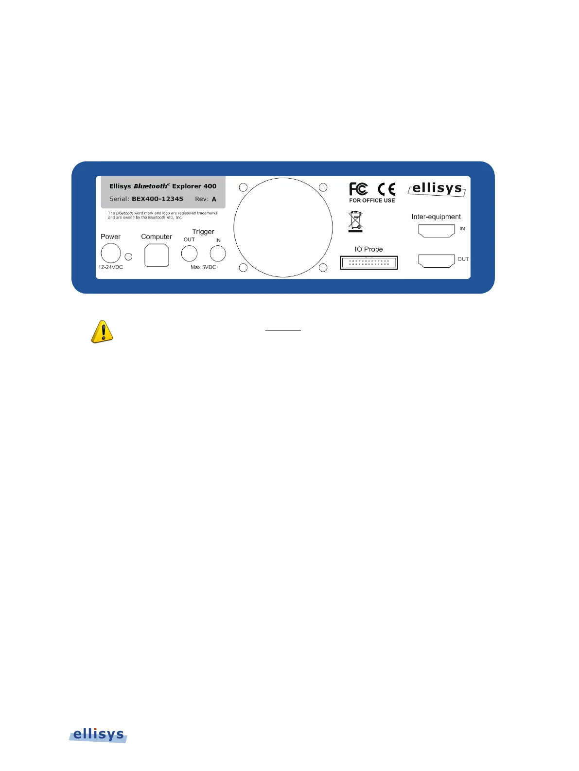 The back panel of the Bluetooth Explorer 400 Analyzer is shown below: