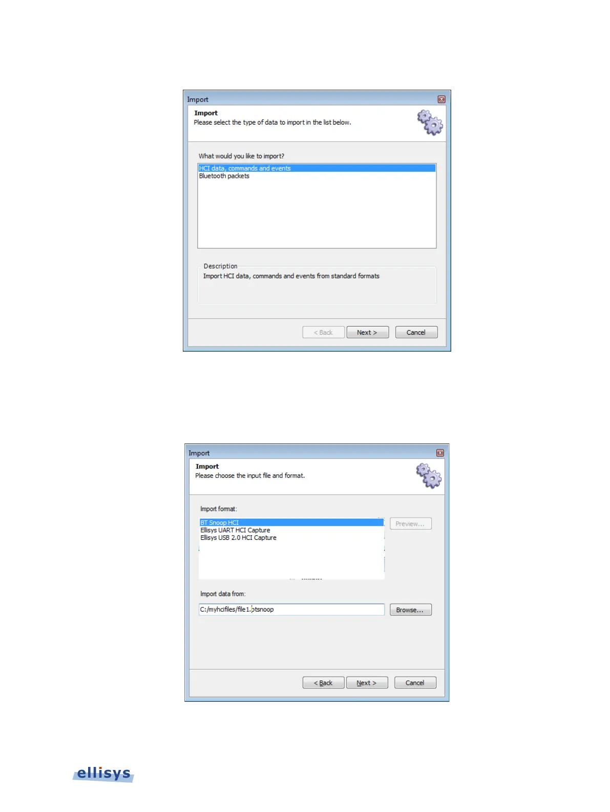 2. Select HCI commands and events or Bluetooth packets.