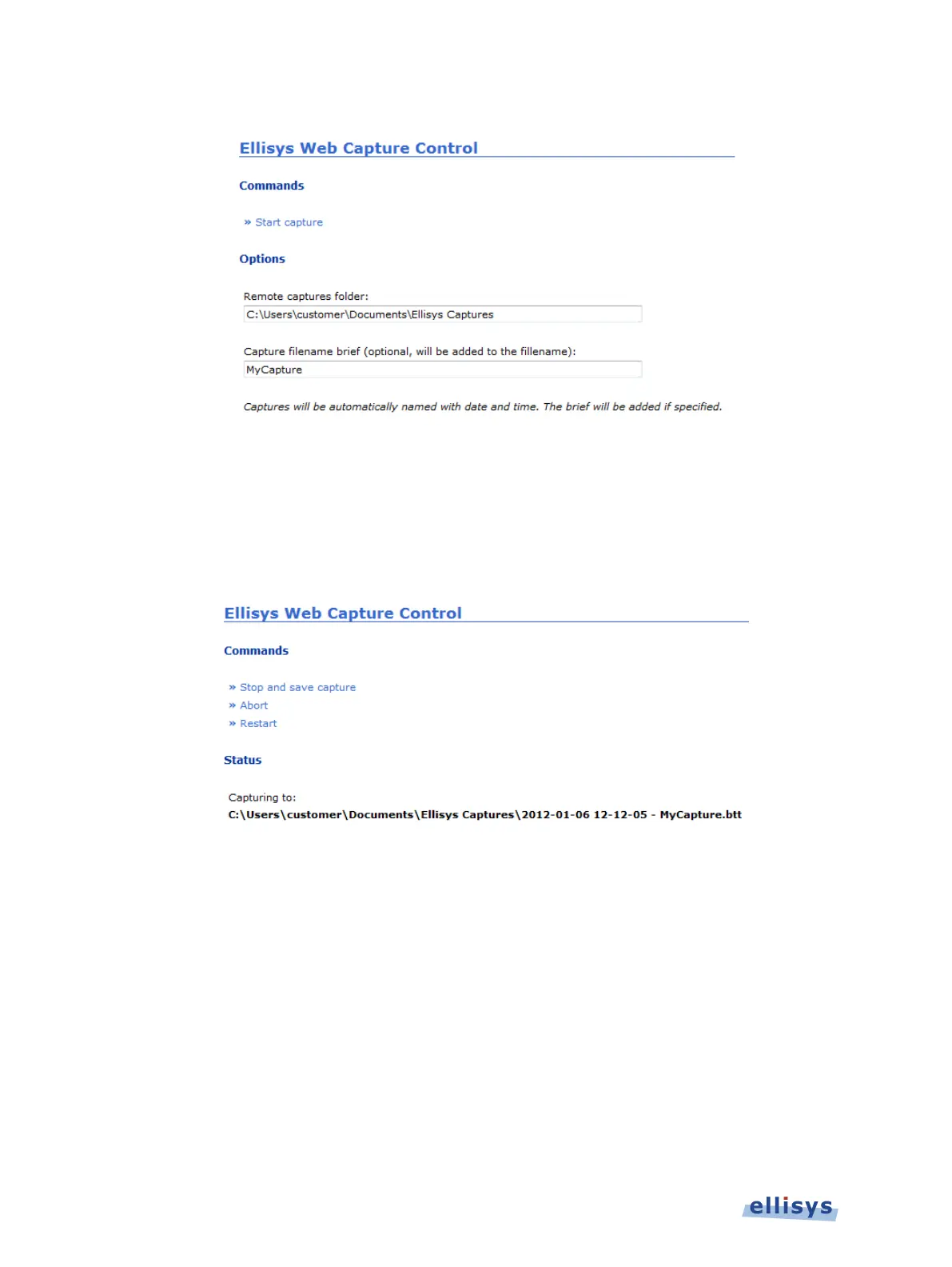 aborted, the capture is stopped and not saved. If restarted, the capture restarts without saving
