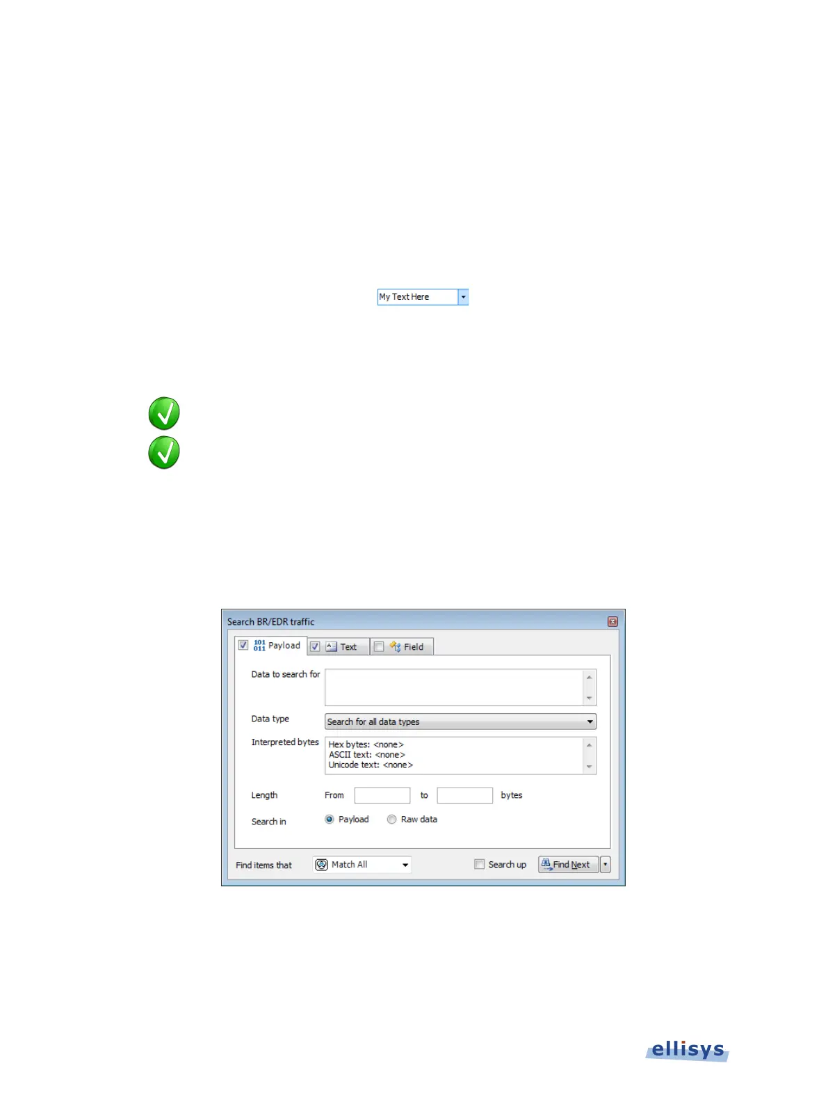 2. Enter Data to search for and/or a payload Length range.