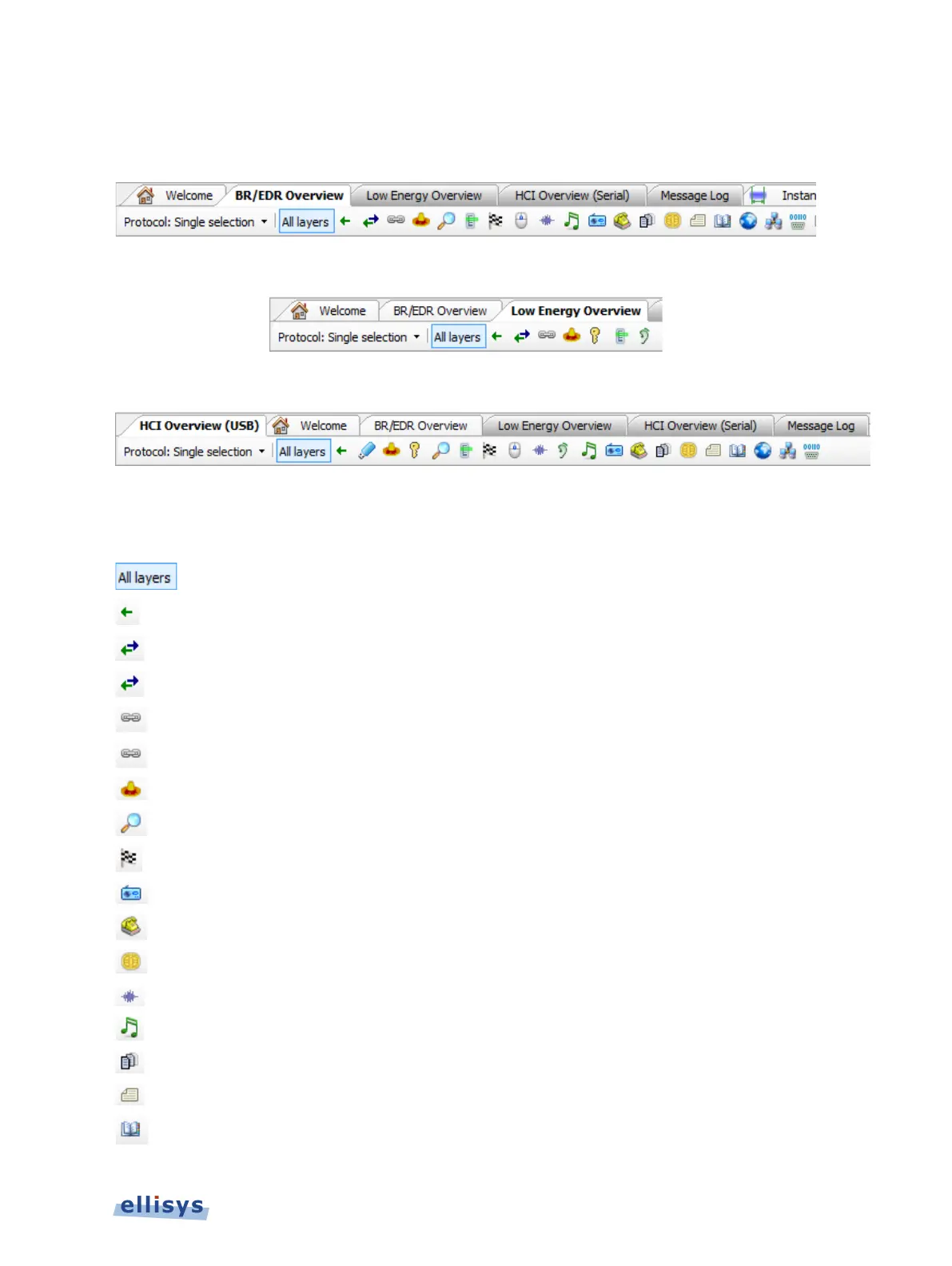Shows all protocols and profiles BR/EDR LE HCI Single