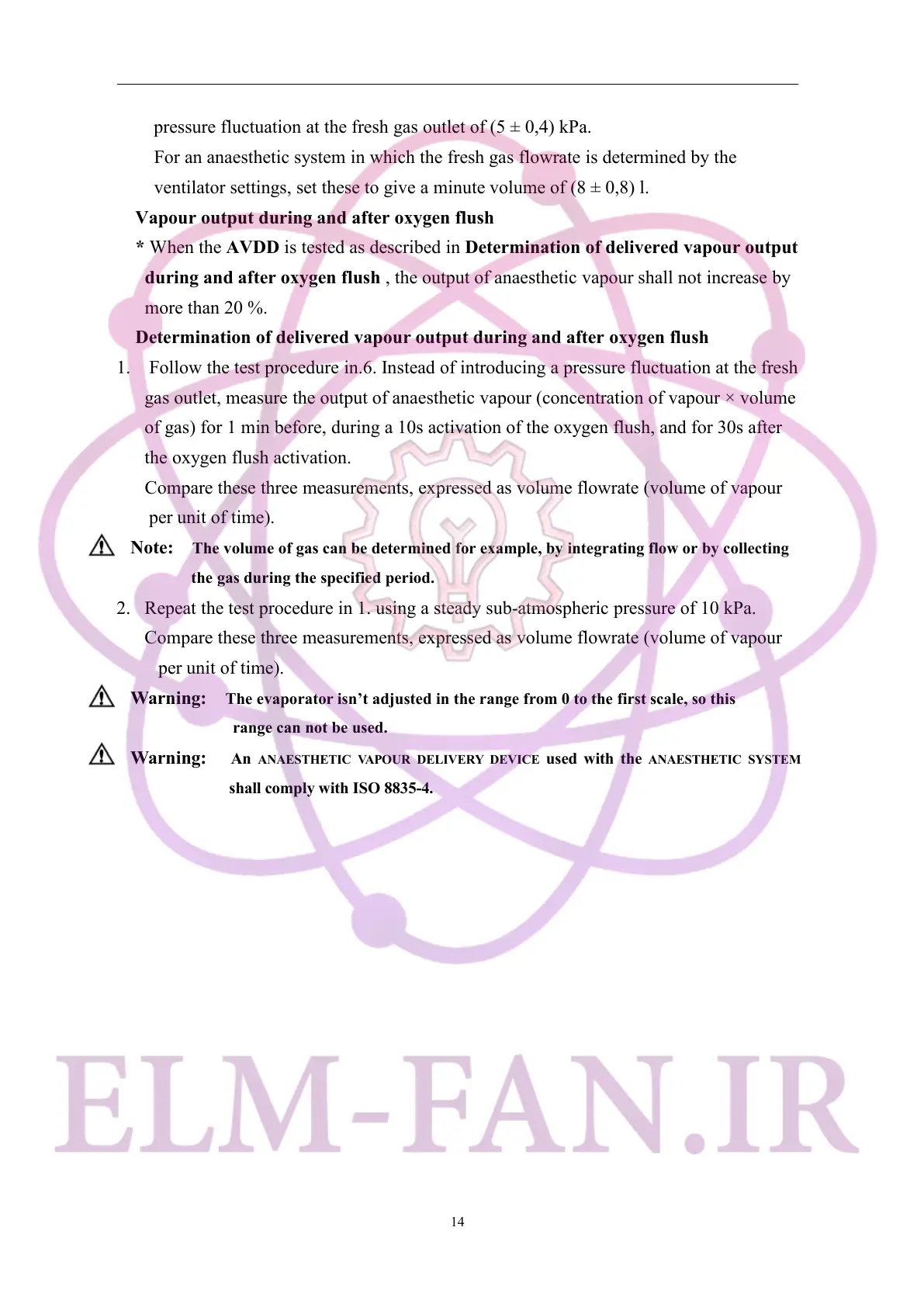 during and after oxygen flush , the output of anaesthetic vapour shall not increase by