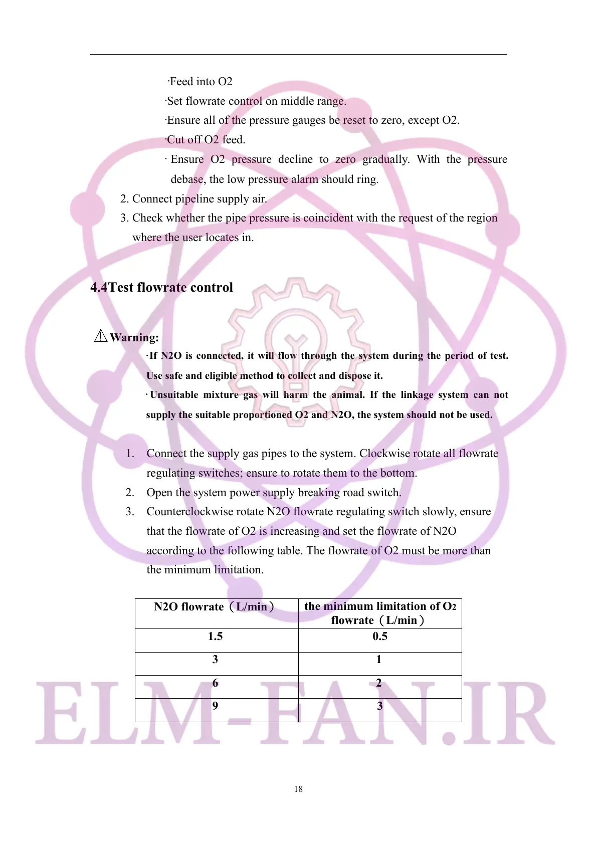 1. Connect the supply gas pipes to the system. Clockwise rotate all flowrate