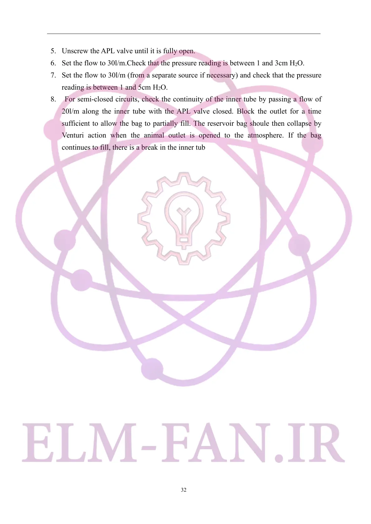 20l/m along the inner tube with the APL valve closed. Block the outlet for a time