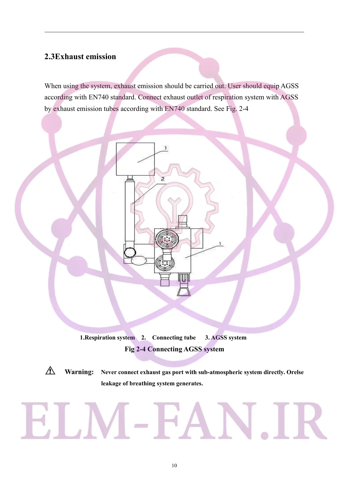 1.Respiration system 2. Connecting tube 3. AGSS system