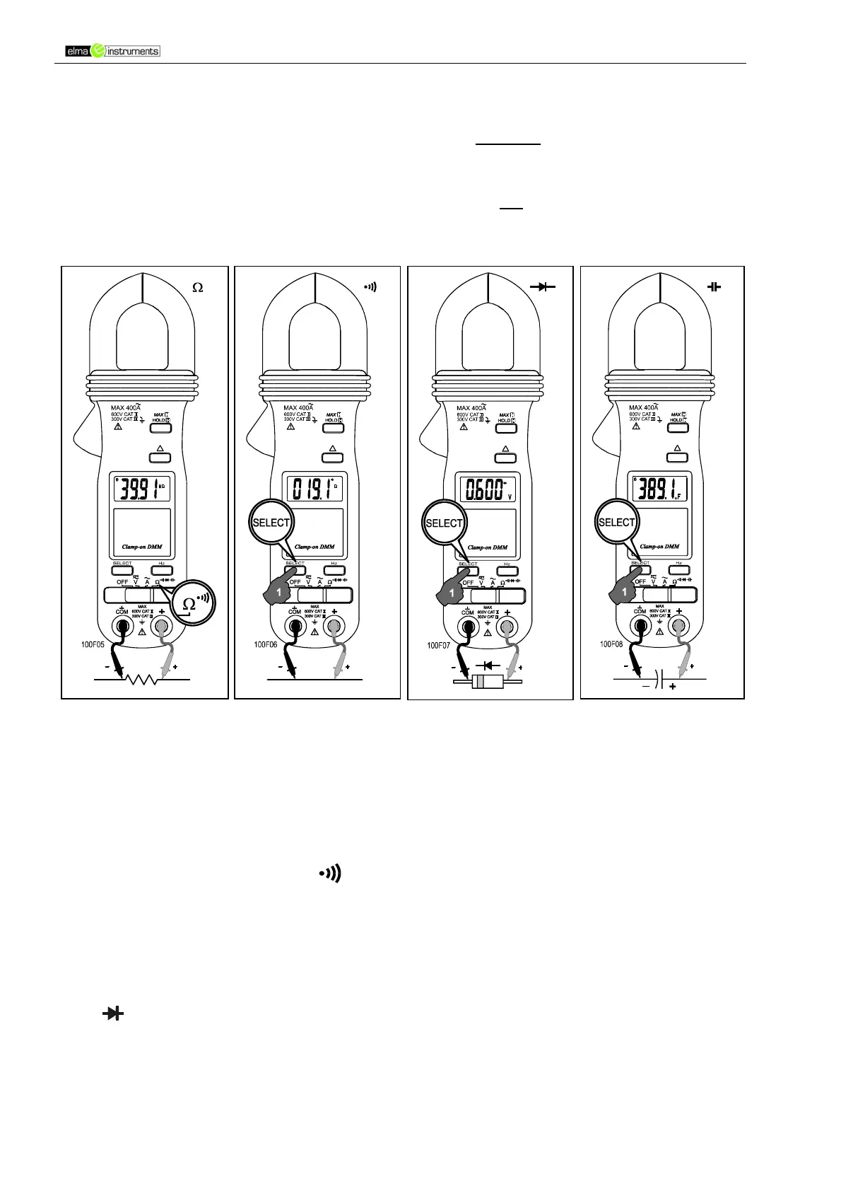 bringen. Durch zweimaliges kurzes Betätigen der Taste SELECT wird die Funktion Diodentest