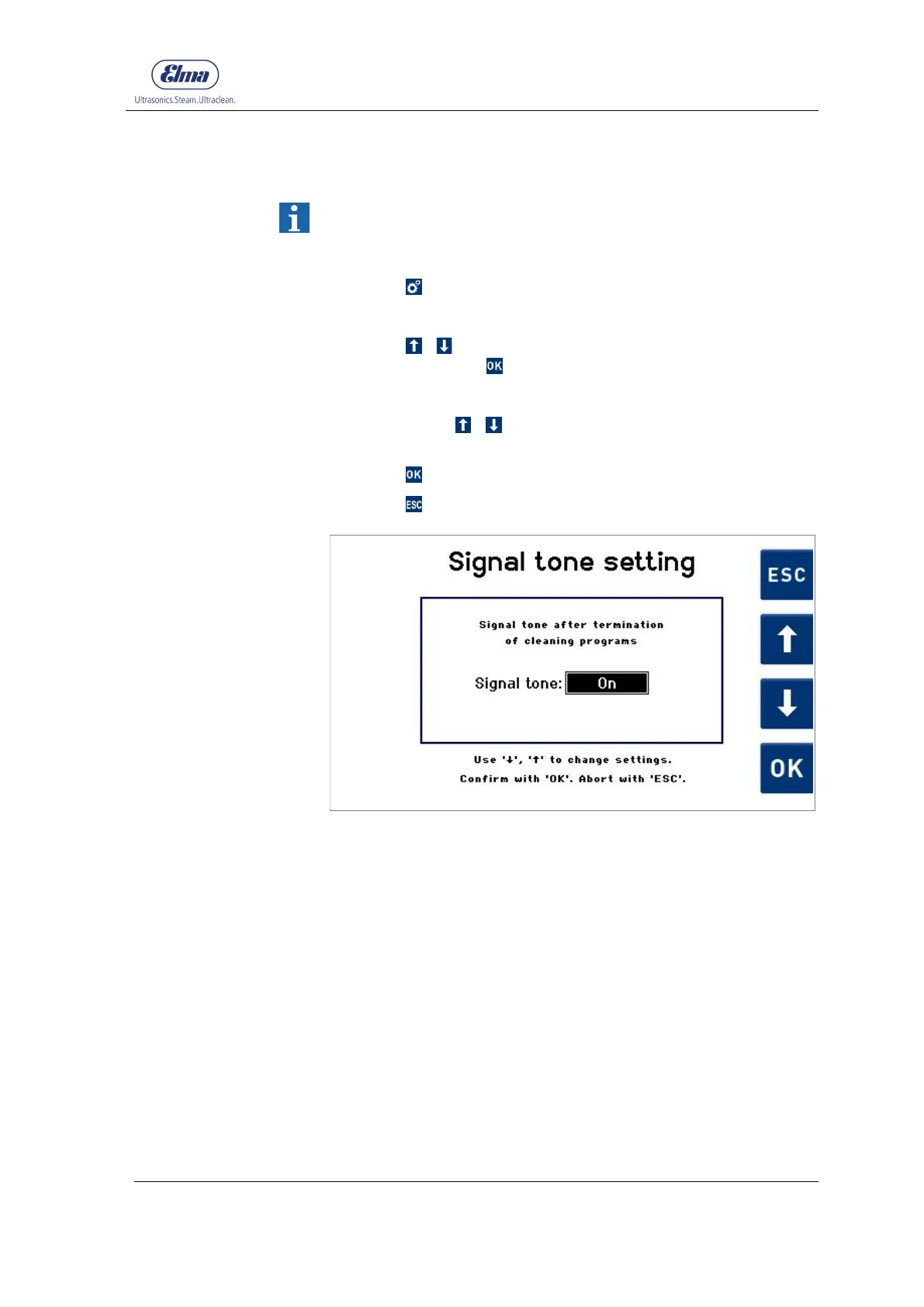 The Signal tone setting menu item enables the activation of a