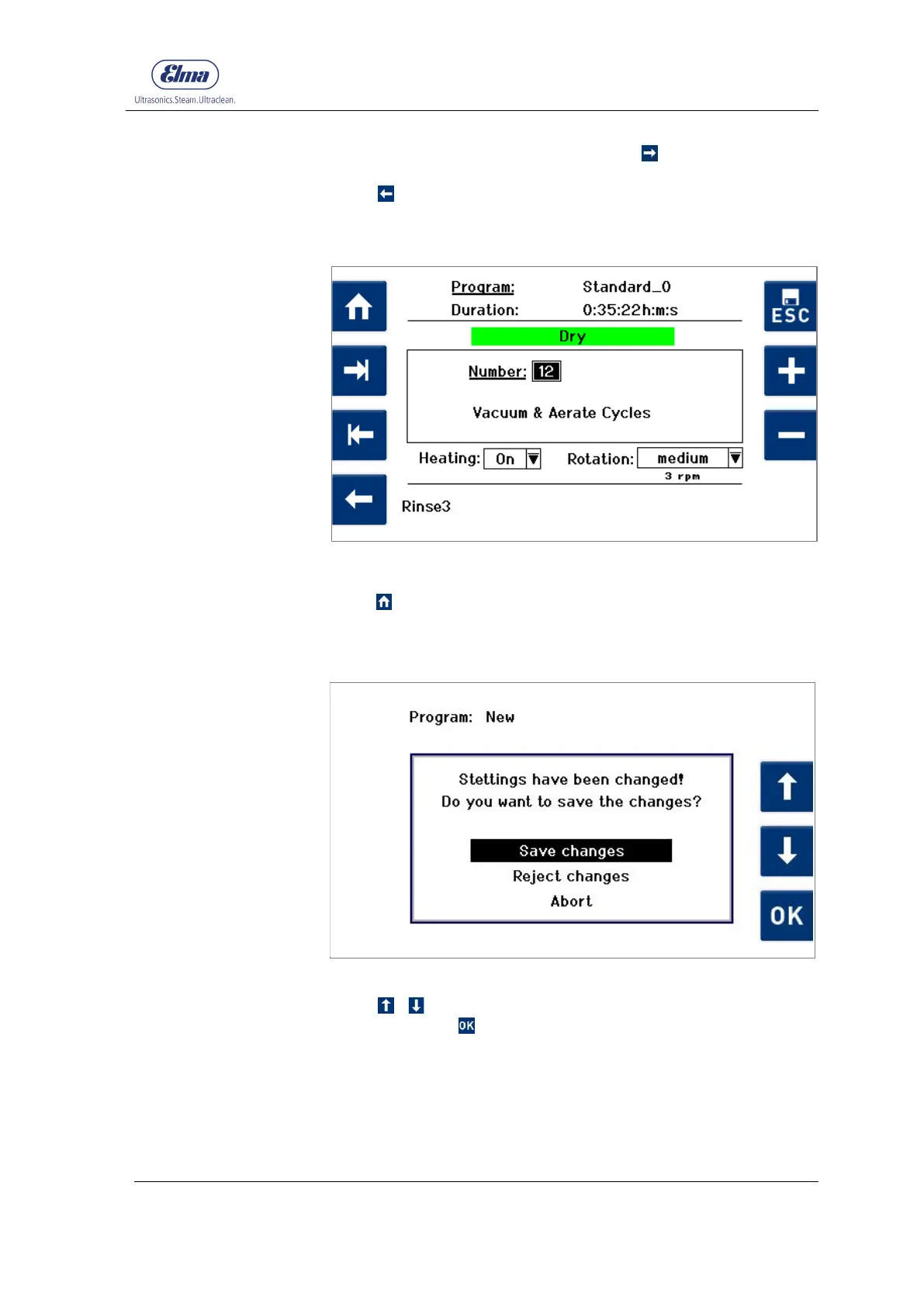 After making the changes, press Rinse 2 to reach the display