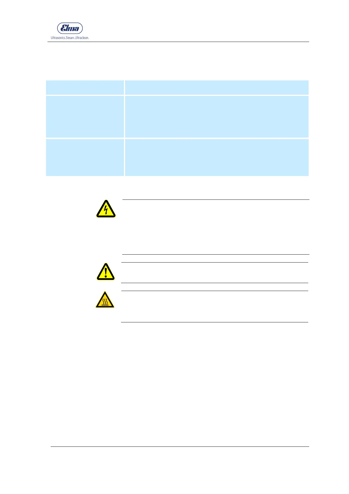 Risk of injury from hot surfaces!
