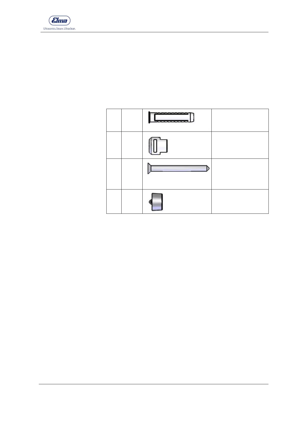 The following parts are supplied for the mounting of the wall