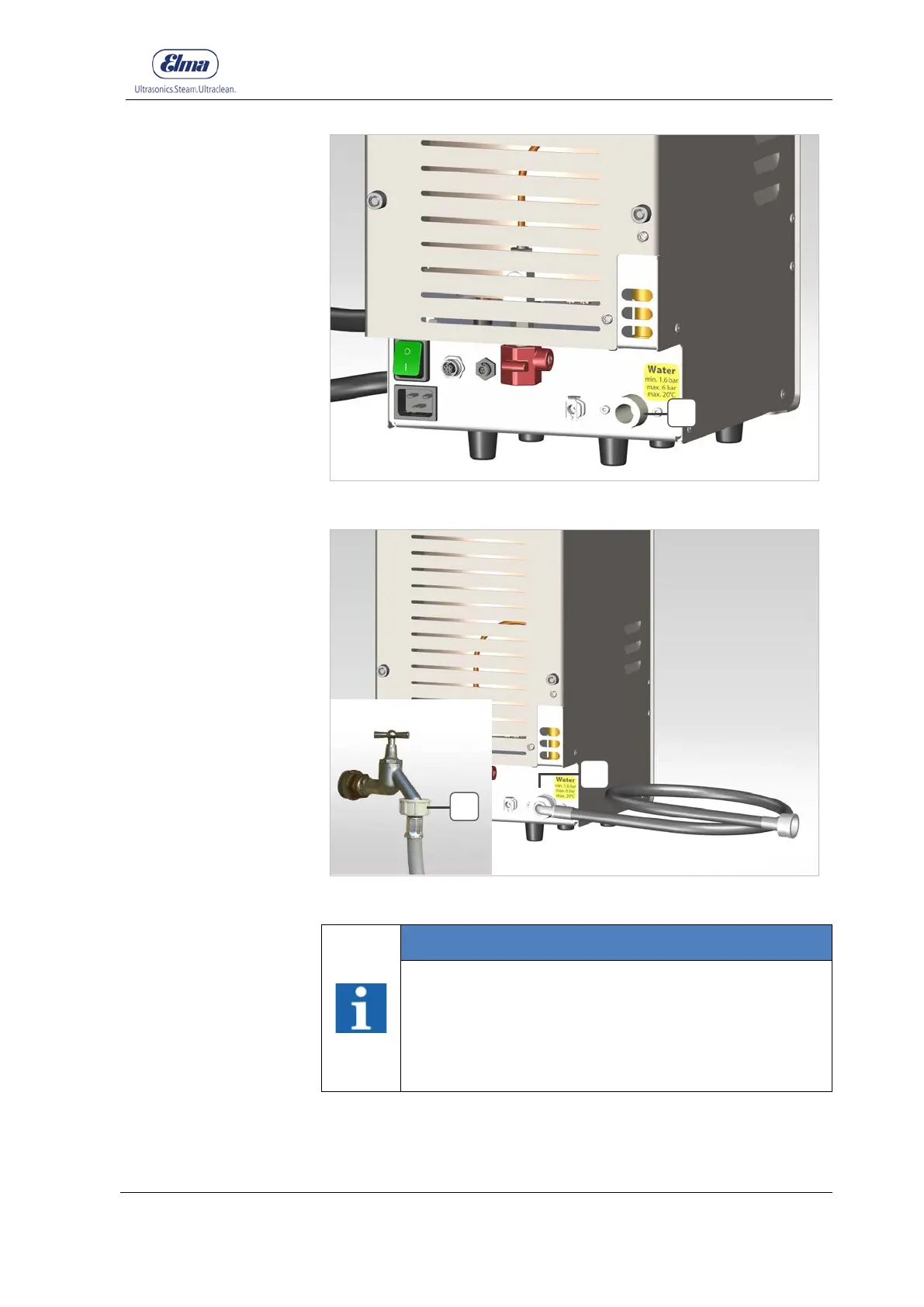 Figure 4.4.2: Device connection (D) for water supply (water pipe)
