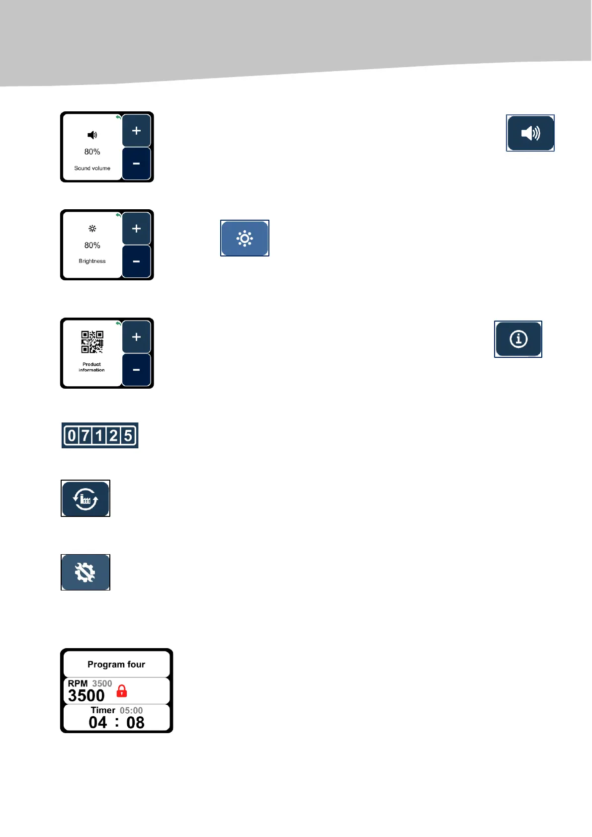 Elmi CM-8S - Sound Volume and Screen Brightness; Information, Time Tracking, and Factory Reset; Password Protection