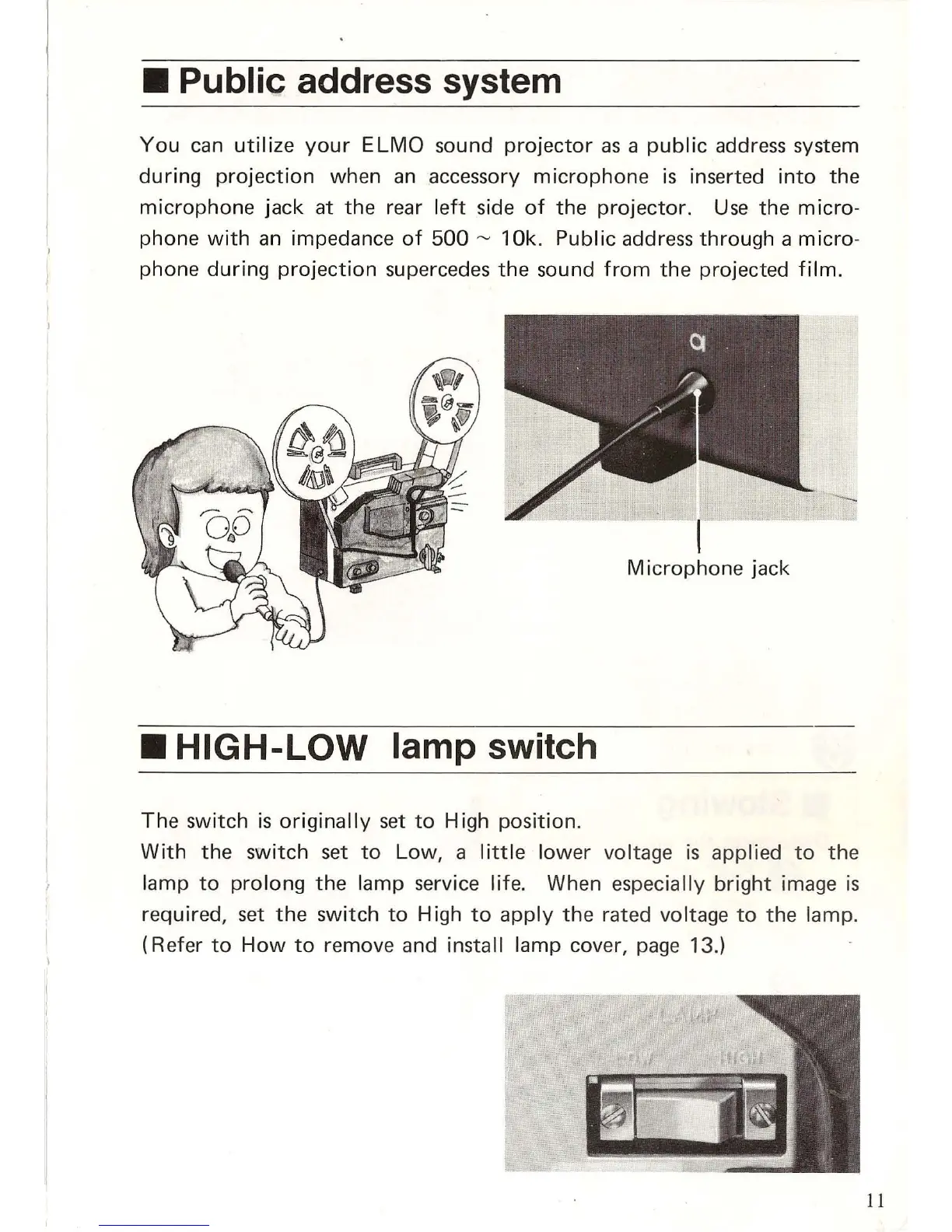 Elmo 16-CL Optical - Public Address System; High-Low Lamp Switch
