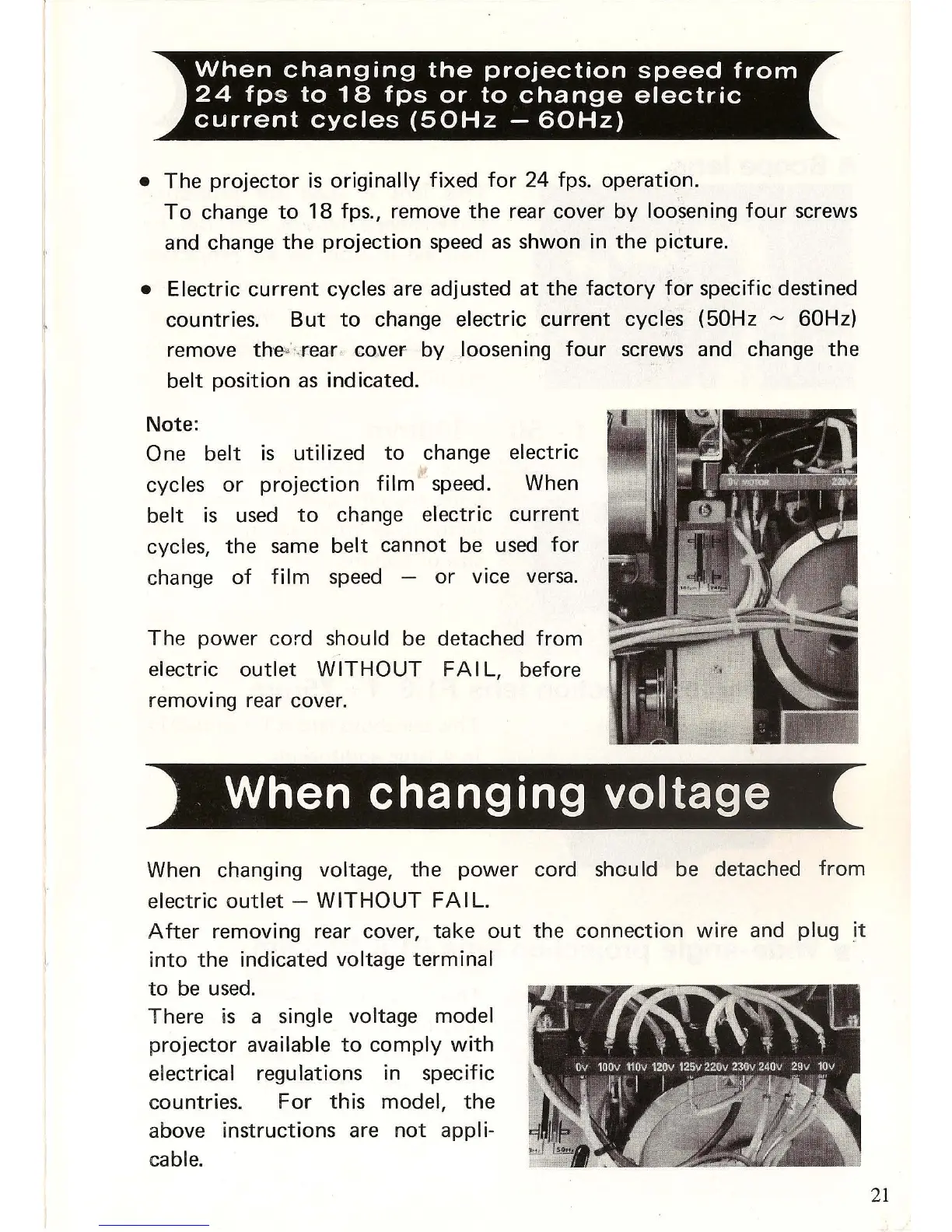 Elmo 16-CL Optical - Adjusting Projection Speed and Voltage; Changing Voltage Settings
