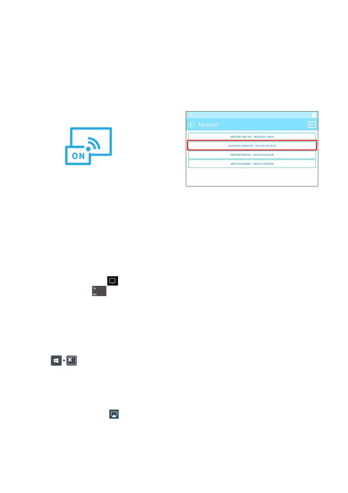 ※For details of how to do Miracasting, refer to the instruction manual of the respective document cameras.