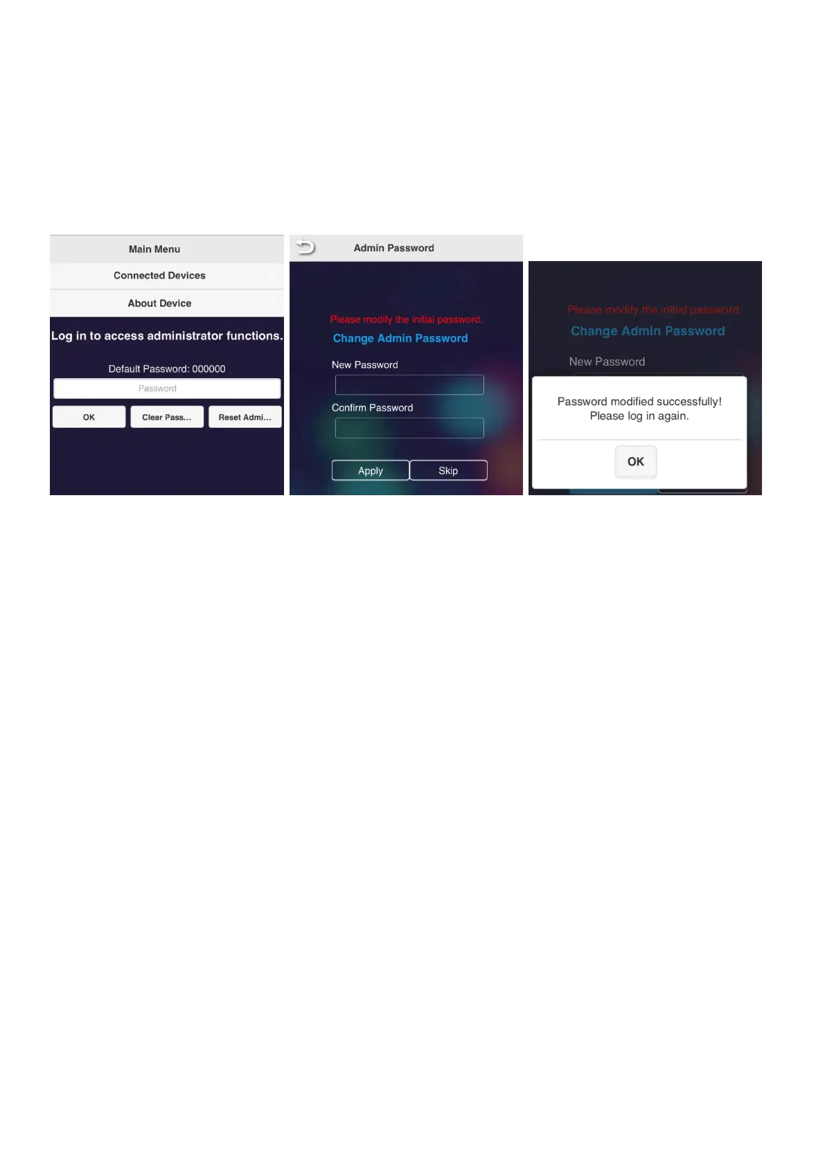 3. When the password change is completed, the message "Password modified successfully! Please log in again." will