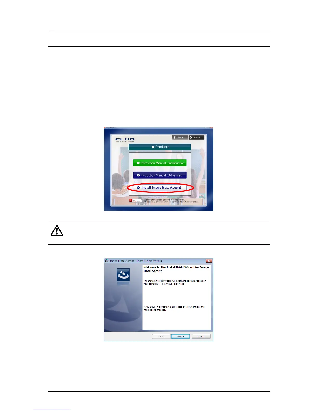Install the Tablet software (Image Mate Accent) by following the procedure described below.