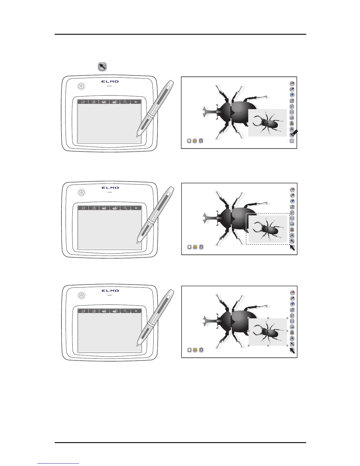 Drag on the screen to select a line or picture within the range of dragging.