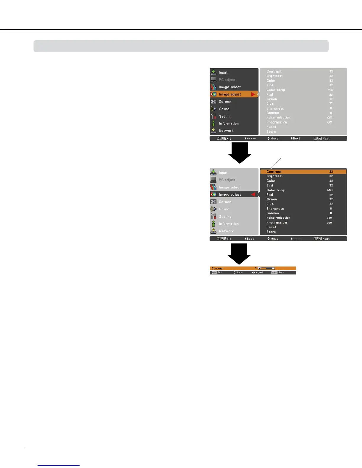 Point button to increase the contrast (from 0 to 63).